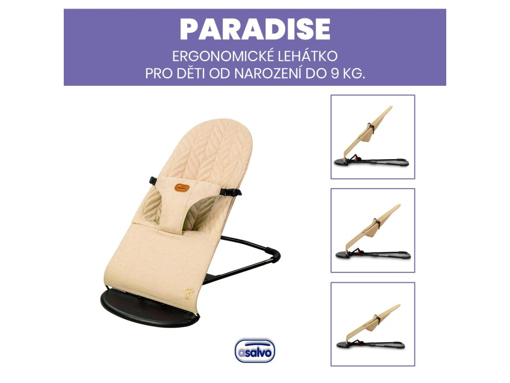 Ergonomické lehátko ASALVO PARADISE je vhodné k odpočinku pro děti od narození do 9 kg.