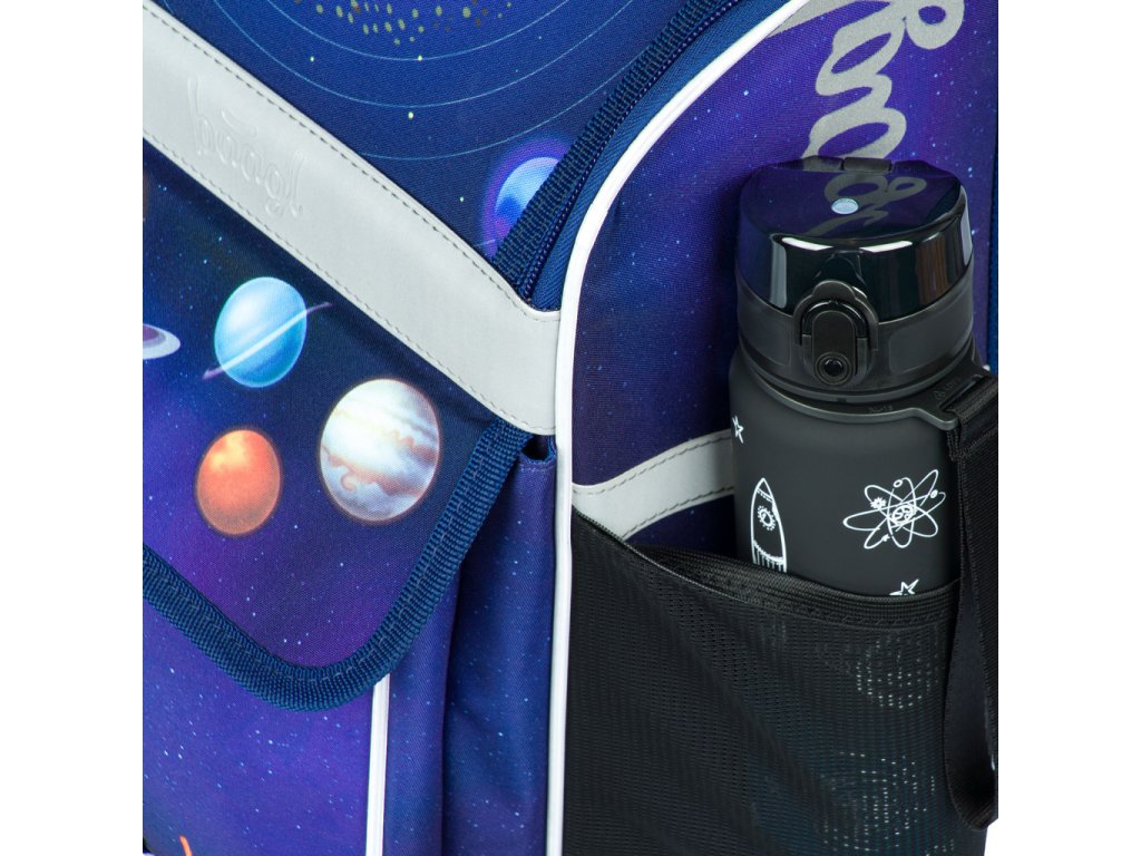- Praktický organizér a kapsy: Uvnitř aktovky najdete průhlednou kapsu na rozvrh a organizér, který pomáhá rovnoměrně rozložit hmotnost. Boční síťované kapsy jsou ideální pro láhev na pití, a izolovaná přední kapsa udrží svačinu čerstvou.