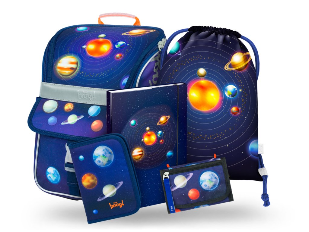 BAAGL 5 SET Zippy Planety, aktovka, penál, sáček, peněženka, desky