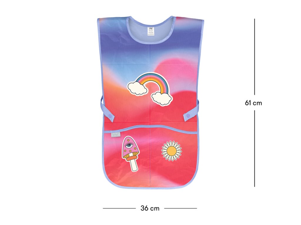 V dolní části zástěry najdete dvě prostorné kapsy, které jsou ideální na drobnosti, které chce mít vaše dítě po ruce. Štětce, pastelky, nůžky, papírové kapesníčky nebo dokonce malá svačinka? Vše se do kapes pohodlně vejde. A co je nejlepší? Děti si konečně nemusí ukládat věci na stůl, kde se snadno ztratí nebo ušpiní.