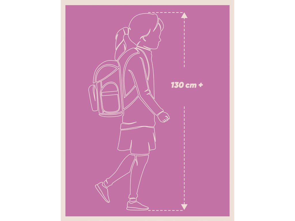 • Ergonomicky tvarovaná záda doplňují plně nastavitelné ramenní popruhy s prodyšným polstrováním, odnímatelný bederní pás a hrudní popruh, které zaručují maximální komfort, stabilitu a správné rozložení zátěže na dětských zádech.