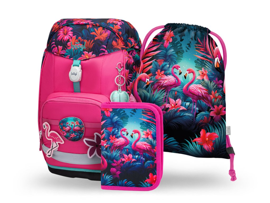 BAAGL SET 3 Airy Plus Plameňáci: batoh, penál, sáček
