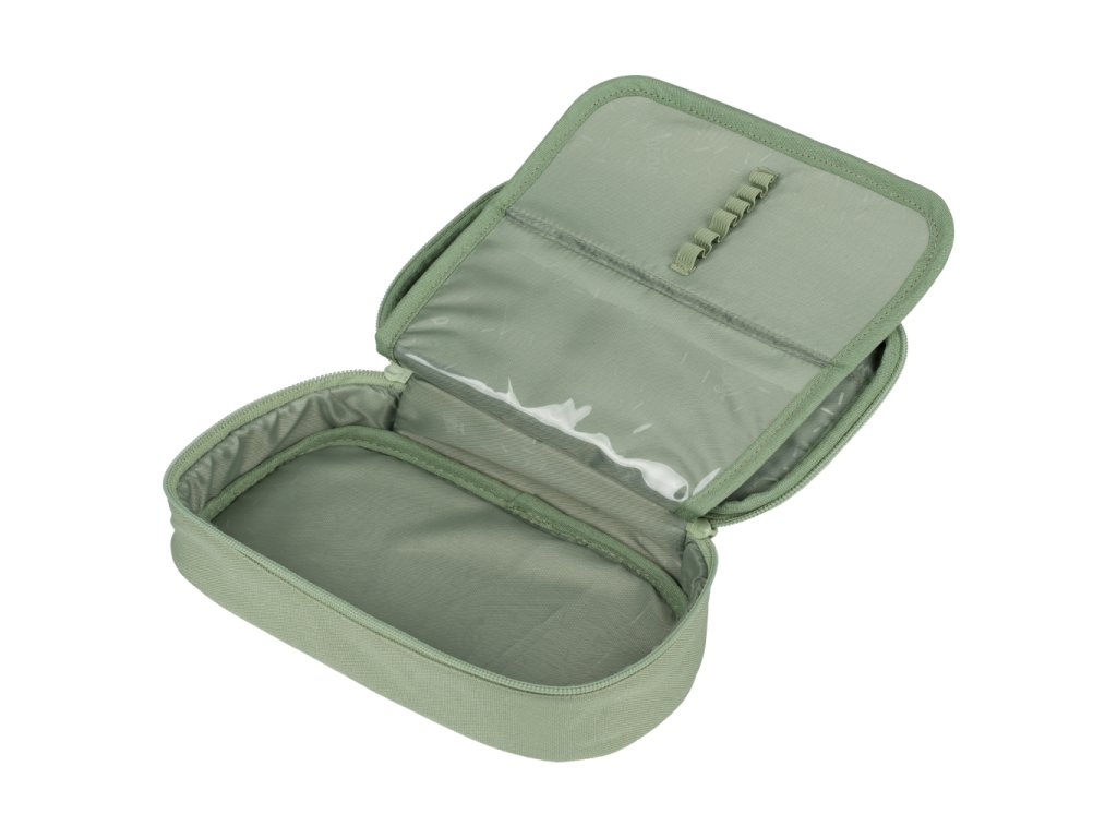 • Kompaktní penál na zip s prostornou hlavní komorou a dvojitou výklopnou chlopní nabízí dostatek prostoru pro psací potřeby i drobnosti.