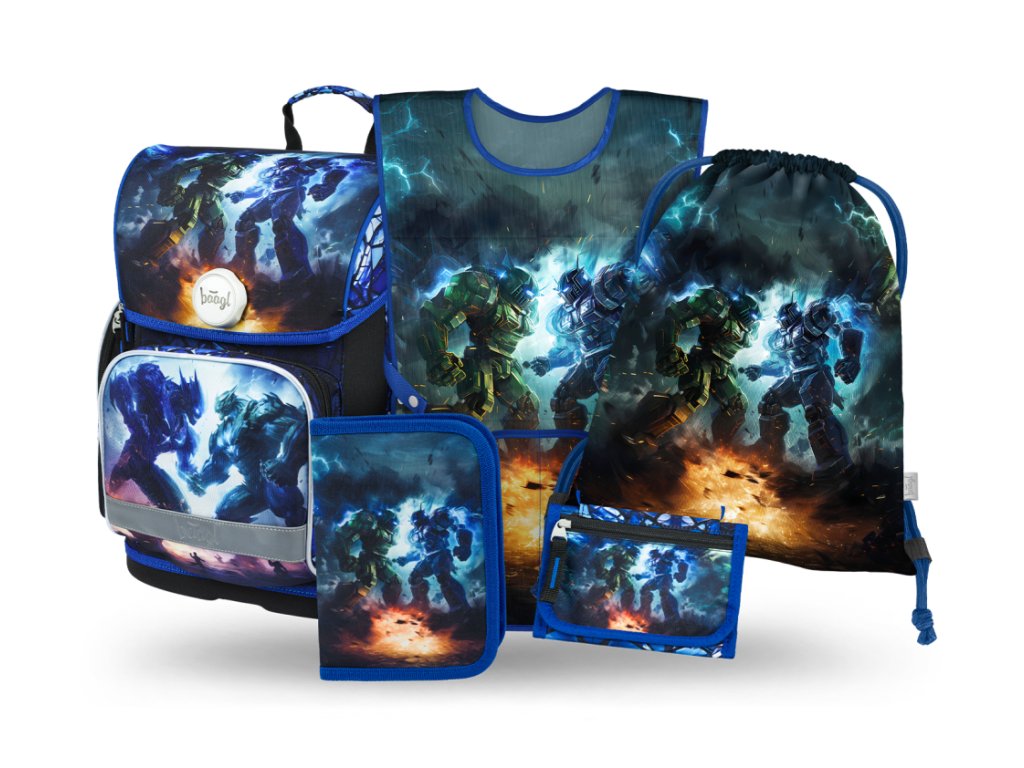 BAAGL SET 5 Ergo Roboti: aktovka, penál, sáček, zástěra, peněženka