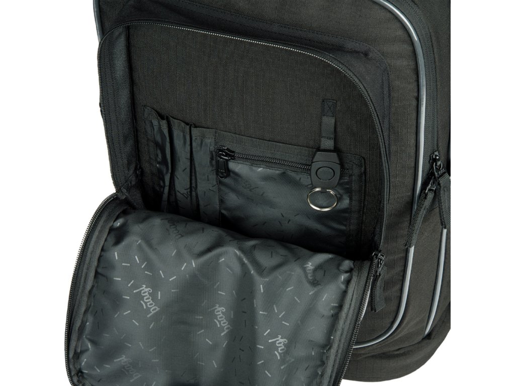 • Přední komora batohu obsahuje praktický organizér a také poutko s karabinou na zavěšení klíčů. Tuto karabinu je možné odepnout a používat samostatně.