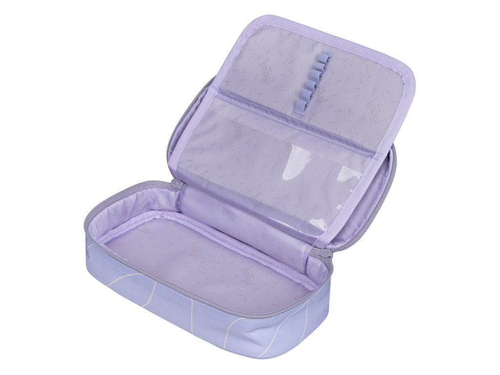 • Kompaktní penál na zip s prostornou hlavní komorou a dvojitou výklopnou chlopní nabízí dostatek prostoru pro psací potřeby i drobnosti.• Součástí penálu je také vnitřní kapsa a okénko na rozvrh hodin.