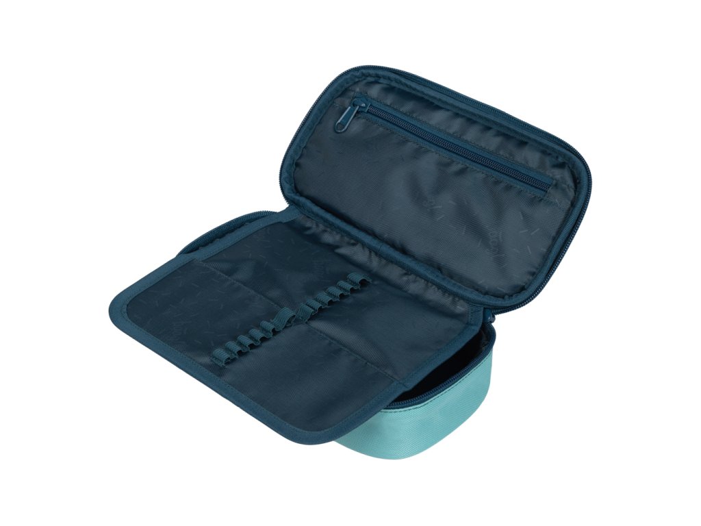 • Kompaktní penál na zip s prostornou hlavní komorou a dvojitou výklopnou chlopní nabízí dostatek prostoru pro psací potřeby i drobnosti.• Součástí penálu je také vnitřní kapsa a okénko na rozvrh hodin.
