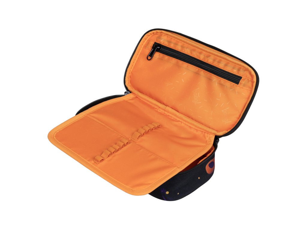 • Kompaktní penál na zip s prostornou hlavní komorou a dvojitou výklopnou chlopní nabízí dostatek prostoru pro psací potřeby i drobnosti.• Součástí penálu je také vnitřní kapsa a okénko na rozvrh hodin.