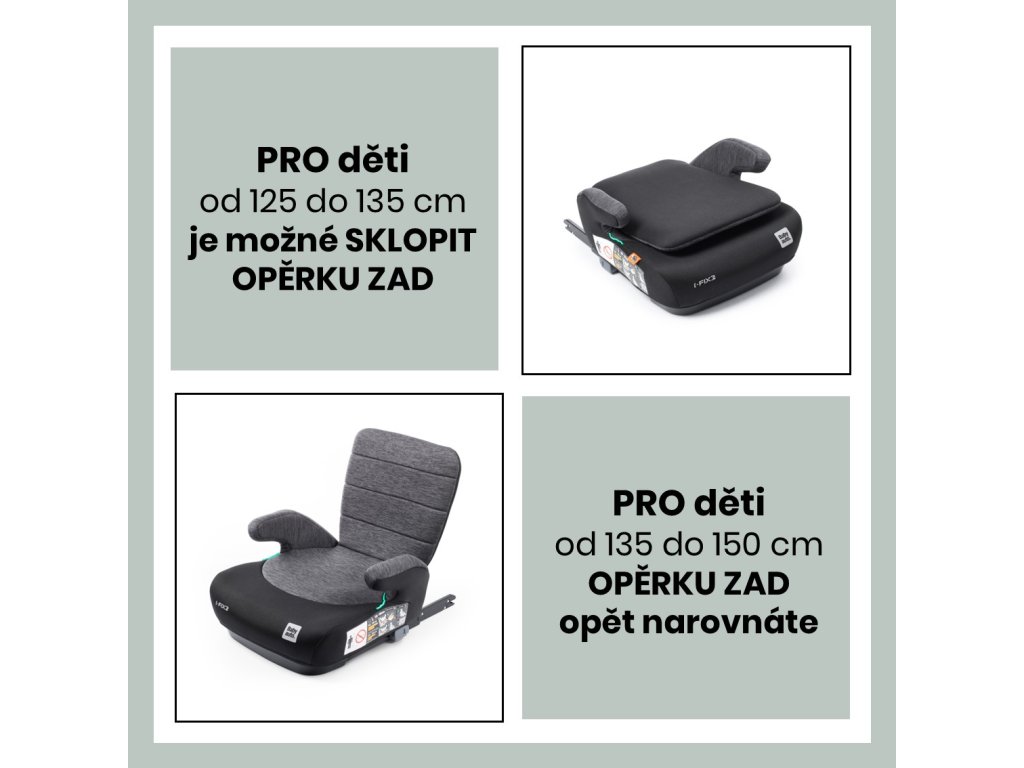 BabyAuto DOKA iFIX 125-150, podsedák se sklopnými zády, black grey flame