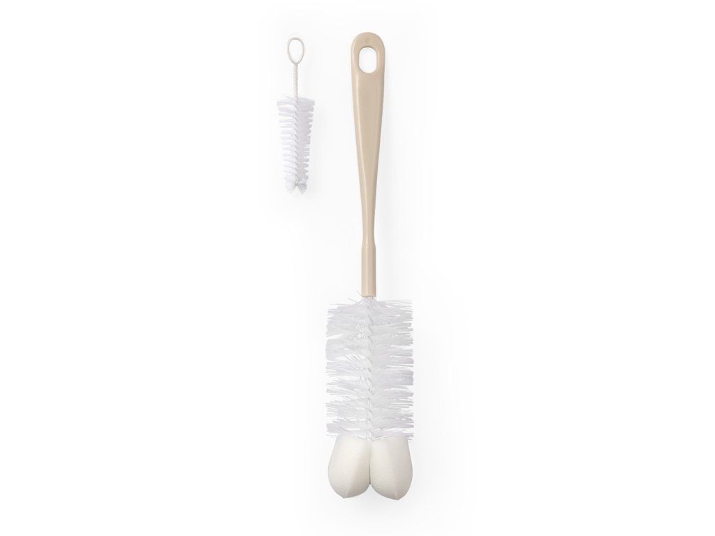 BABYONO Kartáč na kojenecké lahve s mini kartáčkem Beige