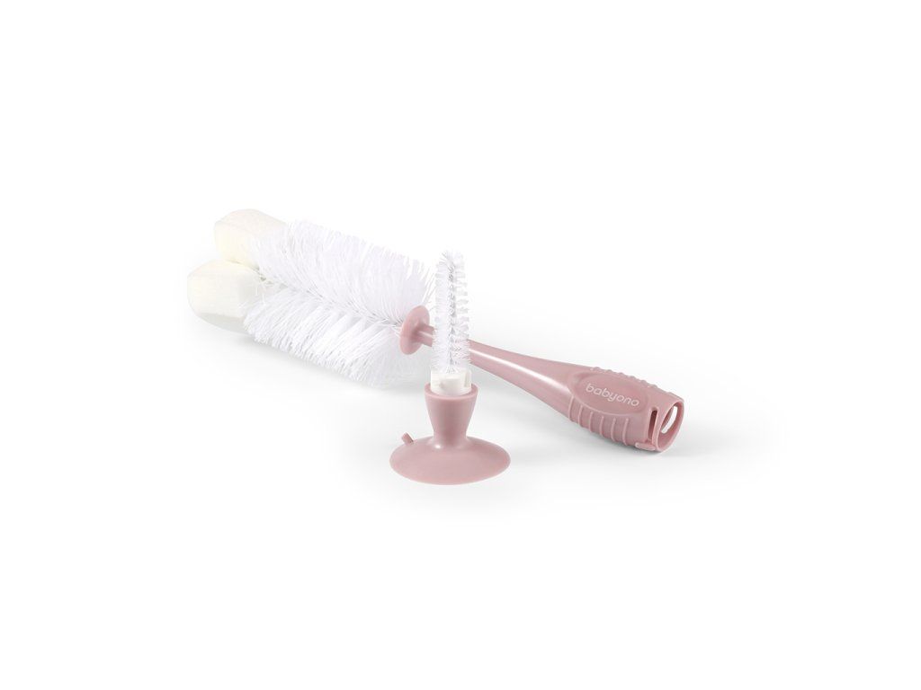 BABYONO Kartáč na lahve a savičky s přísavkou Pink