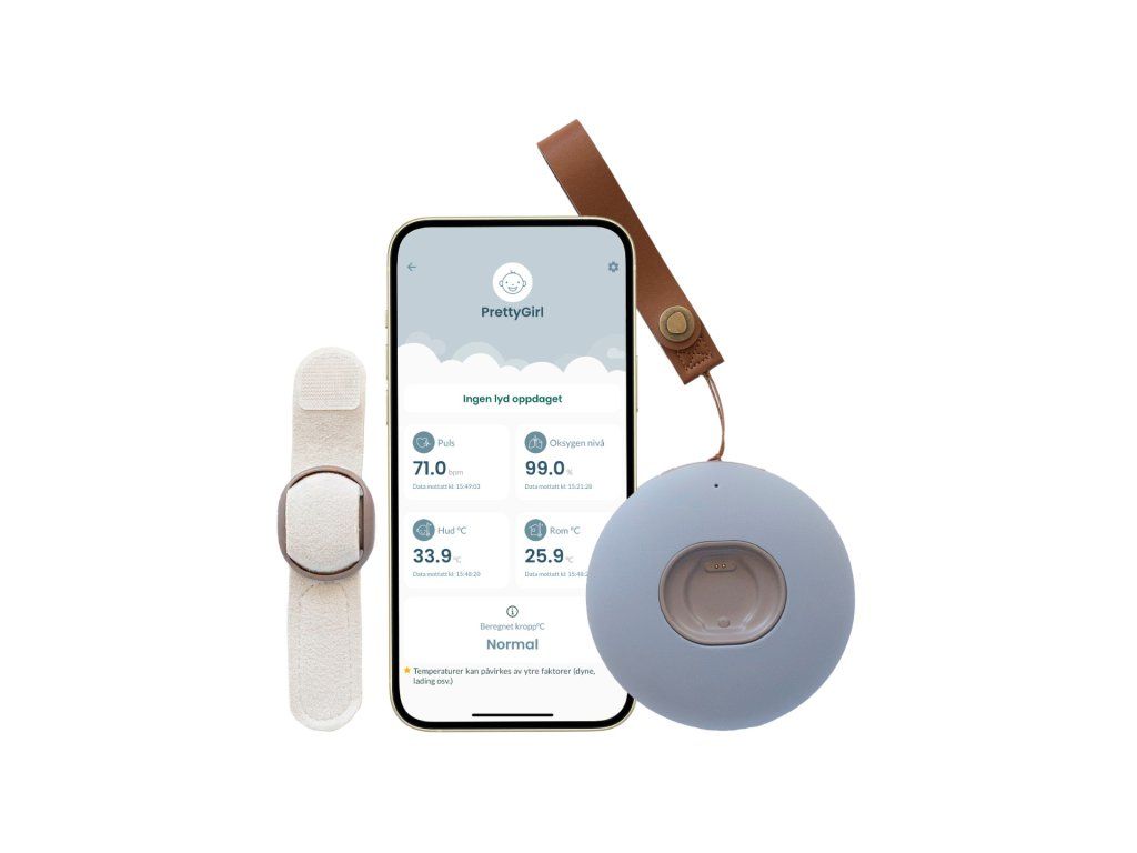 Vše v jednom: dětská chůvička (detekce pláče), informace o potřebách dítěte (teplota kůže, saturace kyslíkem a srdeční frekvence), bílý šum, noční světlo a teplota v místnosti.