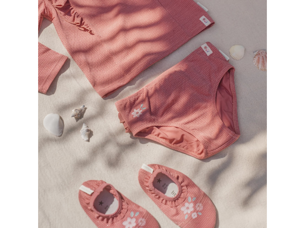 Boty do vody z pružného materiálu s krásným potiskem ochrání nožičky vašeho dítěte před horkým plážovým pískem i před uklouznutím u bazénu. Elastické provedení usnadňuje nazouvání i vyzouvání botiček. Složení: 94% recyklovaný nylon, 6% spandex Možno prát v pračce na 30°C. Po každém použití propláchněte v čisté studené vodě.Doplňkové parametry