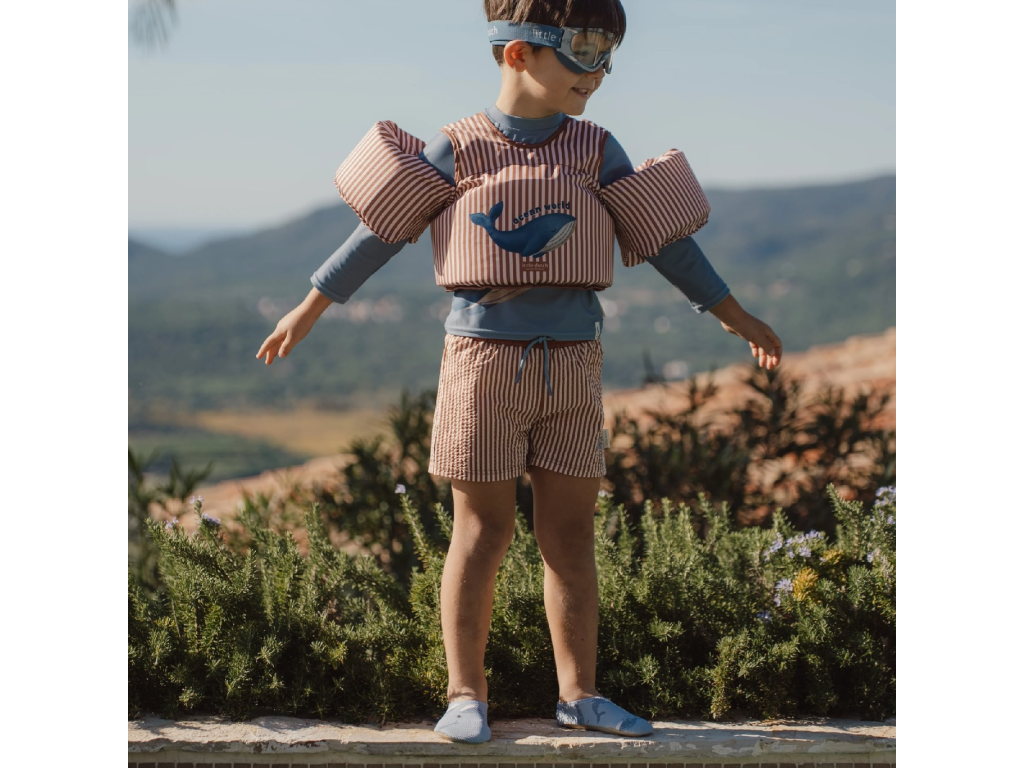 Boty do vody z pružného materiálu s krásným potiskem ochrání nožičky vašeho dítěte před horkým plážovým pískem i před uklouznutím u bazénu. Elastické provedení usnadňuje nazouvání i vyzouvání botiček. Složení: 94% recyklovaný nylon, 6% spandex Možno prát v pračce na 30°C. Po každém použití propláchněte v čisté studené vodě.Doplňkové parametry