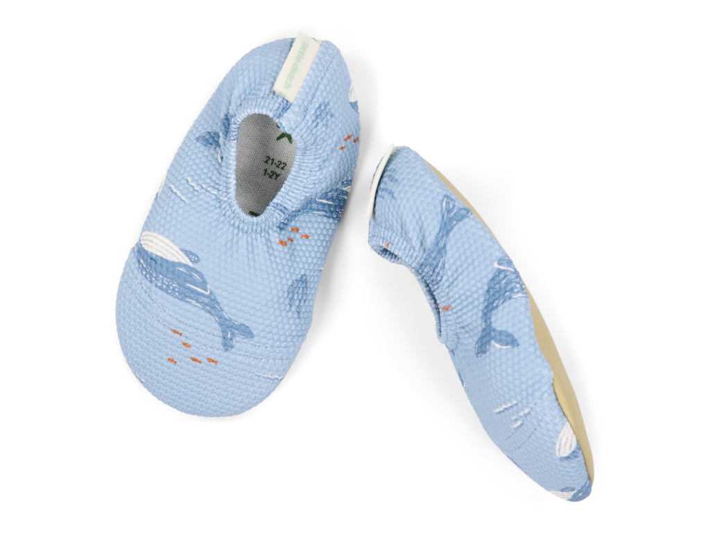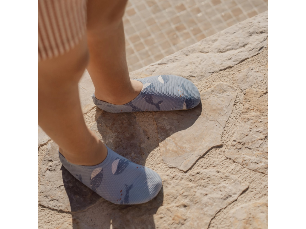 Boty do vody z pružného materiálu s krásným potiskem ochrání nožičky vašeho dítěte před horkým plážovým pískem i před uklouznutím u bazénu. Elastické provedení usnadňuje nazouvání i vyzouvání botiček. Složení: 94% recyklovaný nylon, 6% spandex Možno prát v pračce na 30°C. Po každém použití propláchněte v čisté studené vodě.Doplňkové parametry