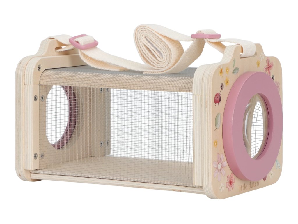 Unikátní pomůcka pro malé zvídavé přírodovědce umožní dětem zkoumat zblízka a bezpečně hmyz, který žije na zahradě, na louce nebo v lese. Velká lupa slouží i jako dvířka, kterými se hmyz dostane dovnitř boxu. Boční stěny jsou ze síťoviny, aby byl hmyz uvnitř v bezpečí a mohl dýchat. Popruh umožňuje snadné nošení na krku s volnýma rukama. Po skončení pozorování hmyz můžete bez problémů vypustit zpátky do přírody, kam patří!