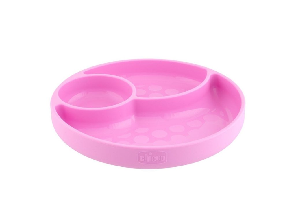 CHICCO Talíř silikonový, růžová 12m+