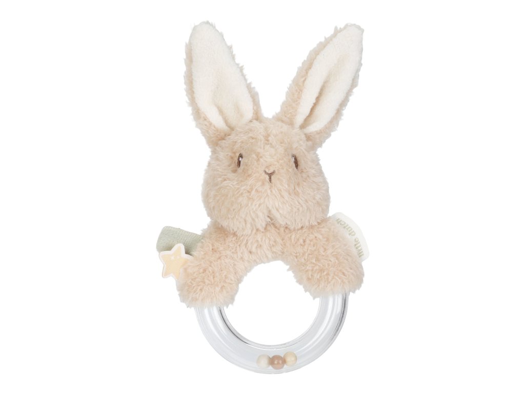 Originální chrastítko v podobě průhledného kroužku s chrasticími korálky a plyšovým králíčkem je ideální jako první hračka pro vaše miminko. Chrastítko má tvar pro snadné uchopení a různorodé textury pro zkoumání rukama i ústy. Hračka je součástí designové kolekce hraček Little Dutch Newborn Naturals. Rozměry: 13,5 x 11 x 6 cm Složení: 100% polyester Možno prát v ruce. Vhodné pro děti od narození.Doplňkové parametry