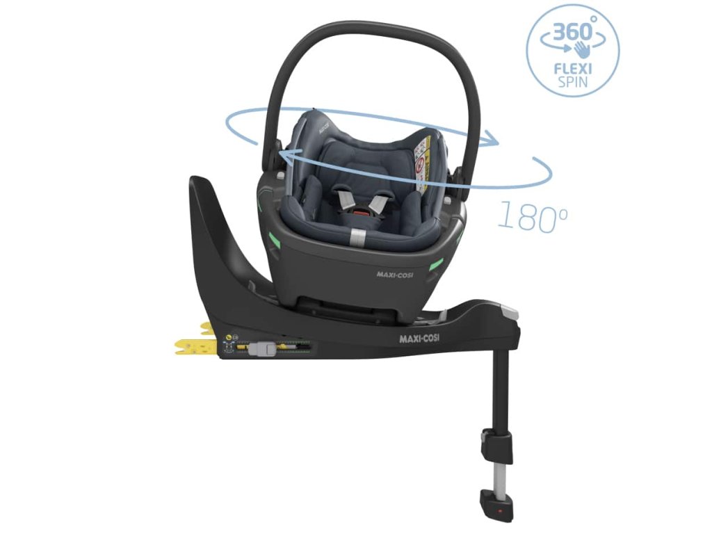 Autosedačka je kompatibilní s otočnou základnou Maxi-Cosi FamilyFix 360. Otočná základna Maxi-Cosi FamilyFix 360 poskytuje nejbezpečnější způsob upevnění autosedačky do auta a zároveň maximálně zjednodušuje rodiči usazení dítěte díky možnosti otočit autosedačku jednou rukou směrem k sobě. Díky technologii FlexiSpin je možné autosedačku otáčet o 360° v jakékoli její poloze. Základna se připevňuje do auta s pomocí úchytů ISOFIX. Autosedačka se na základnu připevní snadno a rychle prostřednictvím technologie Click-and-Go. Vizuální a zvukový indikátor (zacvaknutí) na základně minimalizují pravděpodobnost nesprávného připevnění autosedačky. Ergonomické uvolňovací tlačítko umožňuje jednoduché odpojení autosedačky.