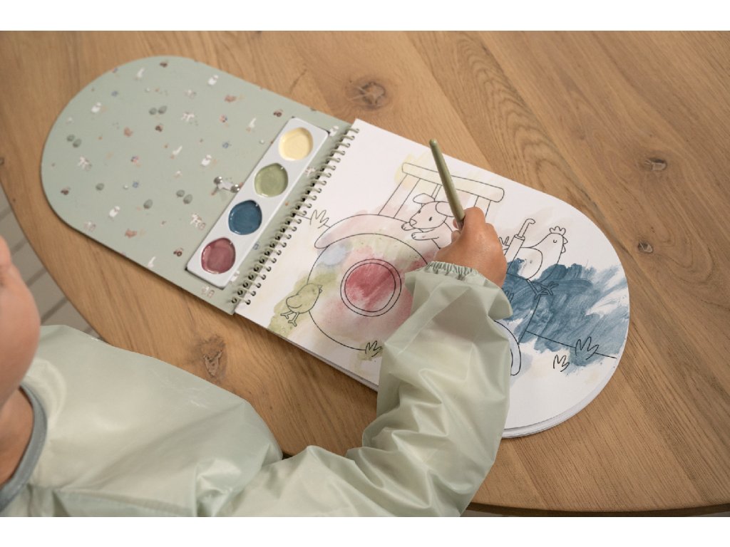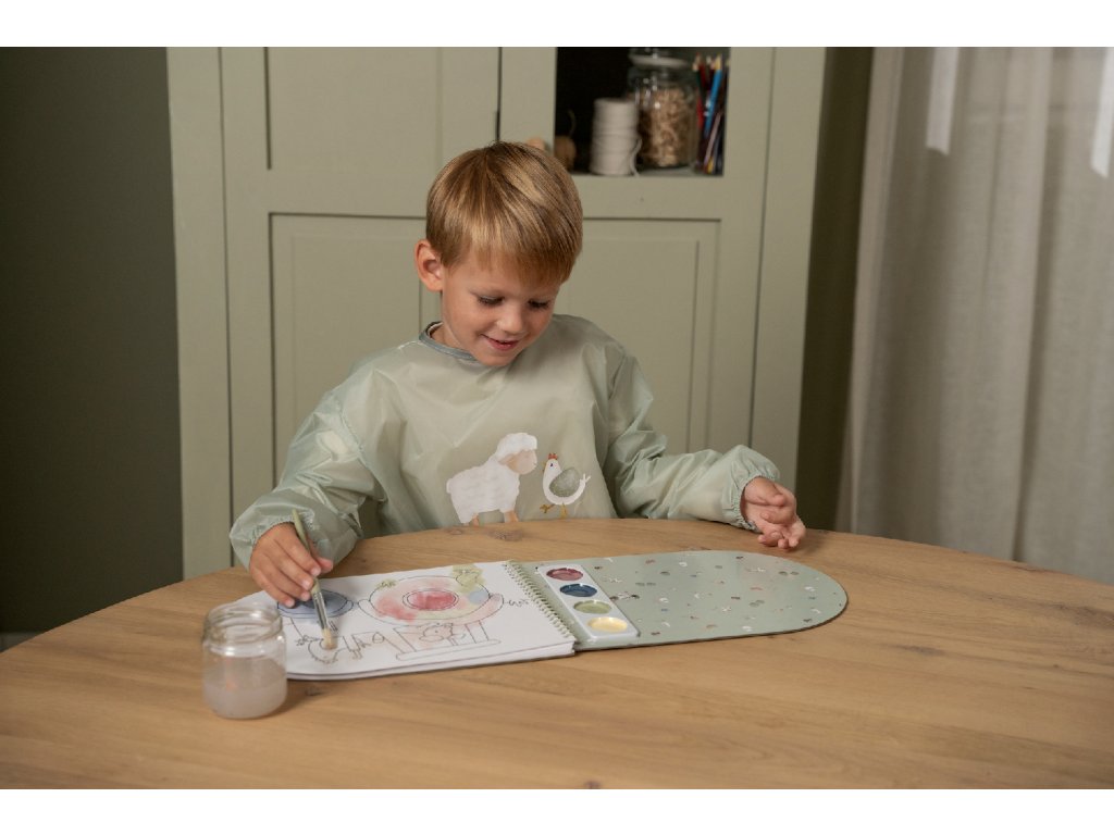 Zástěra s krásným potiskem v podobě ovečky a slepičky je součástí designové kolekce Little Dutch Farma, ve které najdete ložní prádlo, dekorativní doplňky do dětského pokoje, dřevěné a plyšové hračky i jídelní doplňky pro dětské stolování.