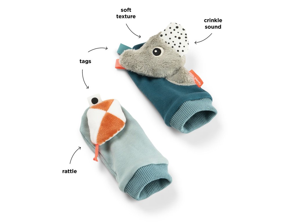 Roztomilé ponožky s našitými detaily, které chrastí, šustí. Ideální pro smyslovou stimulaci vašeho děťátka.