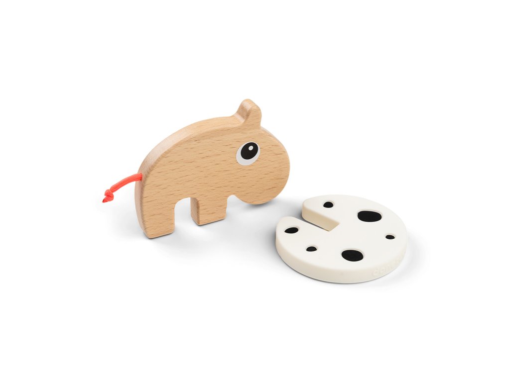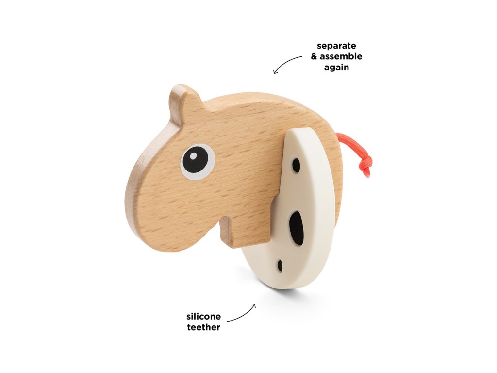 Materiál bukové dřevo a silikon. Barva Mix barev Rozměry 9 x 8,5 x 6 cm. Péče Otírejte měkkým vlhkým hadříkem. Neponořujte do vody. Malá úchopová hračka je vytvořena tak, aby podporovala rotaci zápěstí a variace úchopu. Vhodné pro děti od 3 měsíců. Tato poutavá hračka trénuje úchop vašeho dítěte a zároveň procvičuje jemné motorické dovednosti prostřednictvím oddělení a opětovného složení. Trénujte koordinaci ruka-oko a kolébáním motivujte vaše dítě k plazení. Rozkošná figurka Ozzo je vyrobena ze zodpovědně získaného dřeva a silikonová část je vyrobena z bezpečného silikonu pro děti se stimulující kontrastní barvou. Roztomilý malý provázkový ocásek dodává barevný šmrnc. Silikonovou část lze použít jako kousátko, zklidňující bolavé dásně. Nechte své malé děti trénovat a učit se novým dovednostem se šťastným hrochem Ozzem.Doplňkové parametry