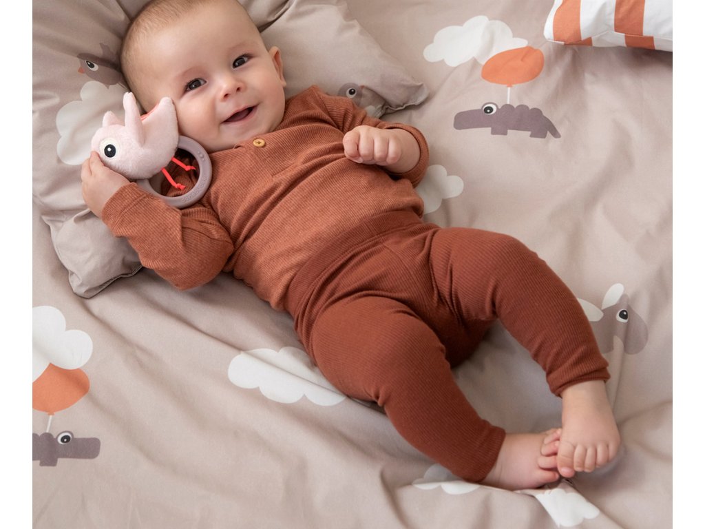 Materiál 100% organická bavlna se skrytým zipem. Rozměry: Peřina: 70 x 100 cm - Polštář: 40 x 45 cm Péče: Lze prát na 60°C. Nesušte v sušičce. Tento produkt je certifikován OEKO-TEX® a GOTS®. Měkké ložní prádlo z organické bavlny Vám poskytne pohodlnou cestu na místo, kde se tvoří sny. Roztomilý potisk Happy Clouds dodá zasněnou náladu každému pokojíčku. Povlečení má praktický bezpečnostní zip YKK v povlaku na polštář i v povlaku na přikrývku. Je zabaleno v malé bavlněné taštičce vhodné k ložnímu povlečení, kterou lze použít na hračky, převlečení, boty nebo jiné praktické účely. Ložní prádlo má celkově jemný tón a roztomilý potisk s Birdee, Ozzo, Crocem a snovými prvky, jako jsou mraky a balónky.Doplňkové parametry