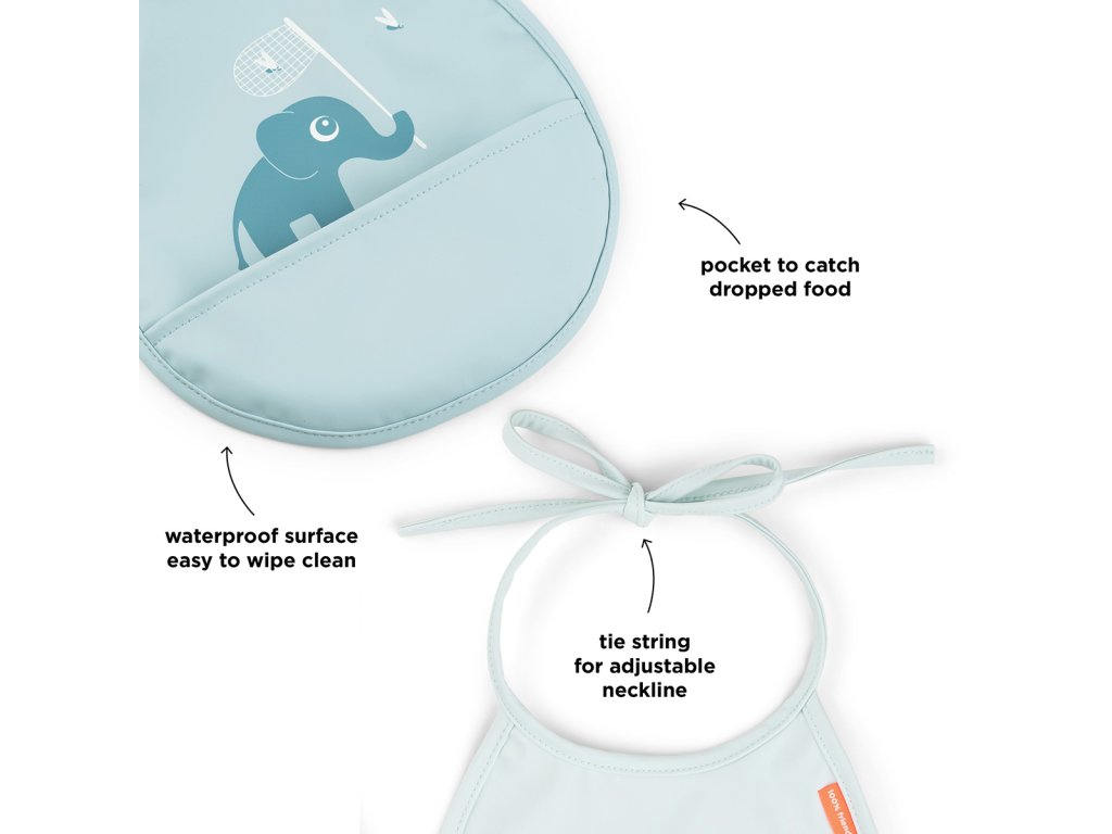 Set 2 ks bryndáčků je roztomilým doplňkem nového jídelníčku vašeho děťátka. Tyto okouzlující bryndáčky jsou v roztomilých pudrových odstínech a mají hravé motivy Elphee honí světlušky. Díky voděodolnému povrchu poskytují vynikající ochranu oblečení vašeho dítěte a po jídle se snadno otírají. Vestavěná kapsa je ideální pro zachycení jakéhokoli upuštěného jídla a pomáhá minimalizovat nepořádky při jídle. Pohodlné zavazování na šňůrku zajišťuje snadné a nastavitelné oblékání pro vaše nejmenší. Zpříjemněte si jídlo s těmito rozkošnými a praktickými bryndáčky. Materiál: 100% polyester s PU zátěrem. Rozměr: 20 x 19,5 cm. Péče: Jemné praní na 30°C. Sušit zavěšením. Tento materiál je testován a vyhovuje nařízením EU o kontaktu s potravinami 10/2011 a 1935/2004.Doplňkové parametry