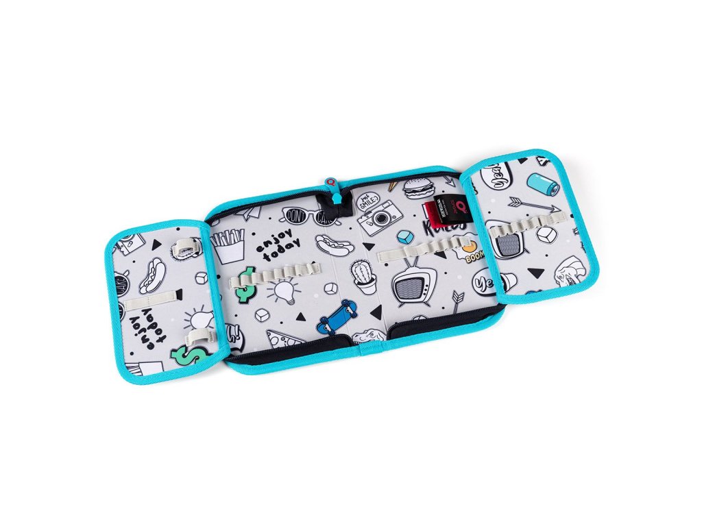 BONUS:Kreslení povoleno! Vnitřní podšívka pouzdra je vyrobena z šedé látky s natištěnými obrázky. Ty si mohou děti vybarvit dle nálady a chuti. Naše malé doporučení - pro vybarvování budou lepší pastelky, fixy by se mohly rozpíjet.