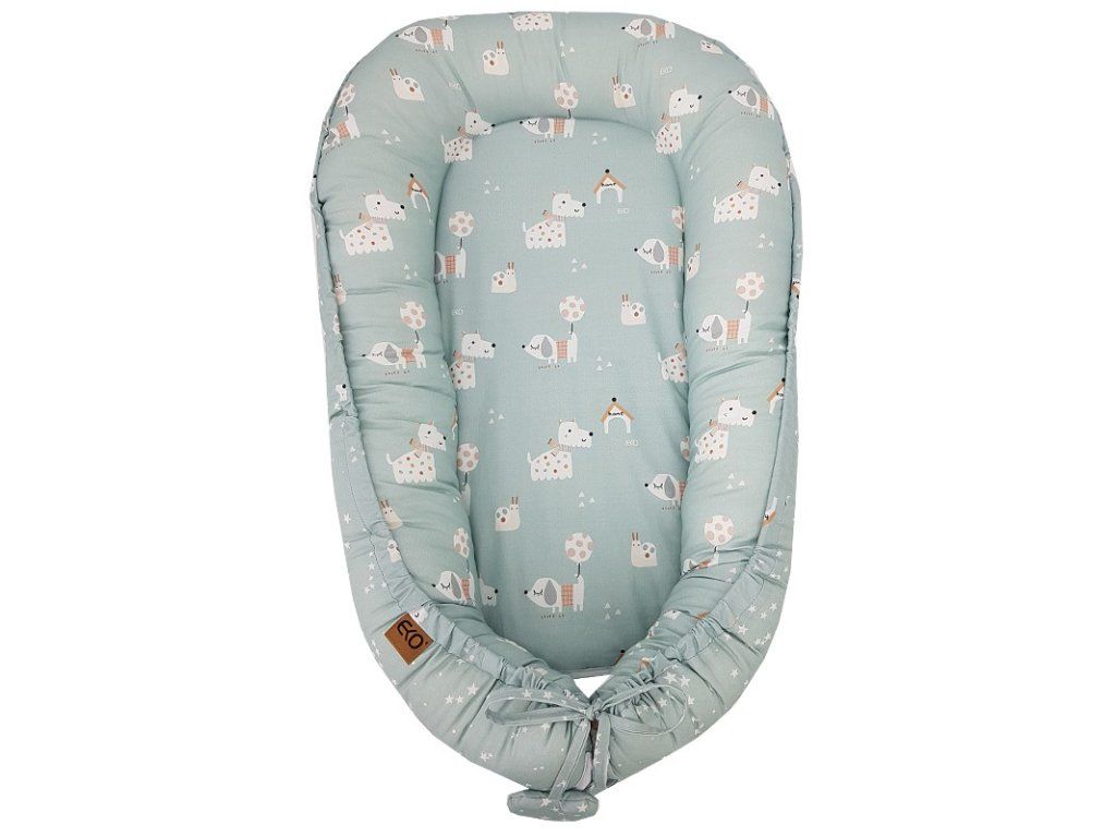 EKO Hnízdo pro miminko oboustranné bavlněné Dogs Stars Mint 90x60 cm