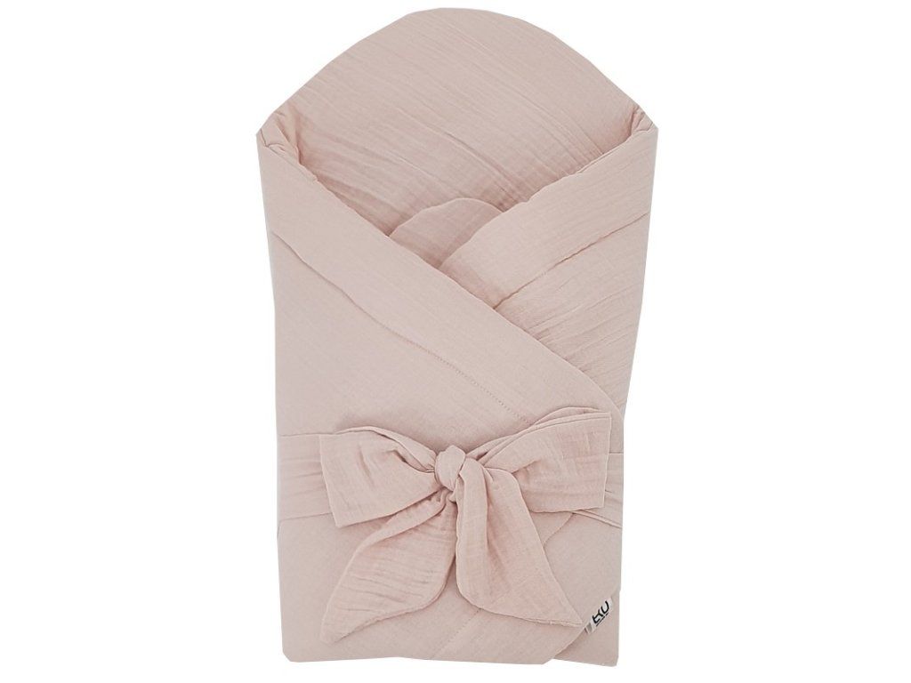 EKO Zavinovačka mušelínová s kokosovou vyjímatelnou vložkou a mašlí Powder pink 75x75 cm