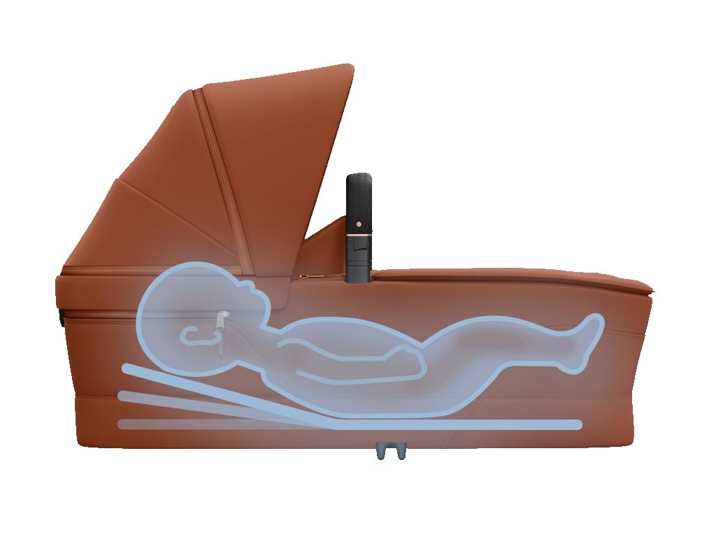 Prostorná korbička je vybavená ClimaFlow ventilačními panely, které pomáhají udržet příjemné klima i v teplejších dnech. Ochranu před sluncem zajišťuje velká prodlužovací stříška s UPF 50+ a průhledovým ventilačním okénkem. Pohodlí miminku poskytuje oboustranná matrace z paměťové pěny s jednou stranou z jemné 100% organické bavlny a druhou stranou z prodyšné síťoviny pro lepší cirkulaci vzduchu. Funkce SoothingSlope umožňuje matraci lehce vyvýšit v horní části, což může pomoci omezit reflux a podpořit pohodlí při trávení vašeho miminka.