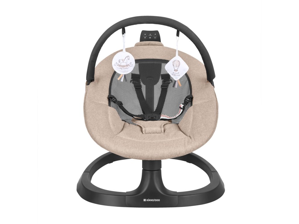 Elektrické houpací lehátko KikkaBoo Zazu je navrženo tak, aby miminku poskytovalo maximální komfort, bezpečí a jemné houpání, které uklidňuje a napomáhá odpočinku. Díky chytrým funkcím, tichému provozu a kvalitní konstrukci se rychle stane oblíbeným místem pro odpočinek i hraní. Nabízí zcela tichý provoz, díky kterému může miminko nerušeně spát. Lehátko nabízí dvě využití: od narození do 9 kg jako houpací lehátko a až do 30 kg jako pevné křesílko. Tichý a plynulý pohyb – zcela nehlučný systém houpání s třemi jedinečnými směry pohybu a třemi nastavitelnými rychlostmi Chytré ovládání – dotykový displej, časovač s volbou 15, 30 nebo 45 minut a 8 melodií s pěti úrovněmi hlasitosti pro klidné usínání Pohodlné a vzdušné – nastavitelná opěrka zad ve dvou polohách a boční části z prodyšné síťoviny zajišťují vzdušnost a pohodlí Zábava pro miminko – hrazdička s měkkými hračkami podporuje zrakové vnímání a motivuje dítě ke hře Bezpečná konstrukce – pevný ocelový rám, 5-bodový bezpečnostní pás a protiskluzové nožičky pro maximální stabilitu Součástí balení je DC adaptér pro pohodlné napájení Konstrukce: ocelový rám Funkce houpání: 3 směry pohybu, 3 rychlosti Audio funkce: 8 melodií, 5 úrovní hlasitosti Časovač: 15 / 30 / 45 minut Rozměry: 79 × 57 × 71 cm Hmotnost: 4,8 kg Vhodné pro děti od narození do 9 kg jako houpací lehátko, do 30 kg jako křesílko.Doplňkové parametry