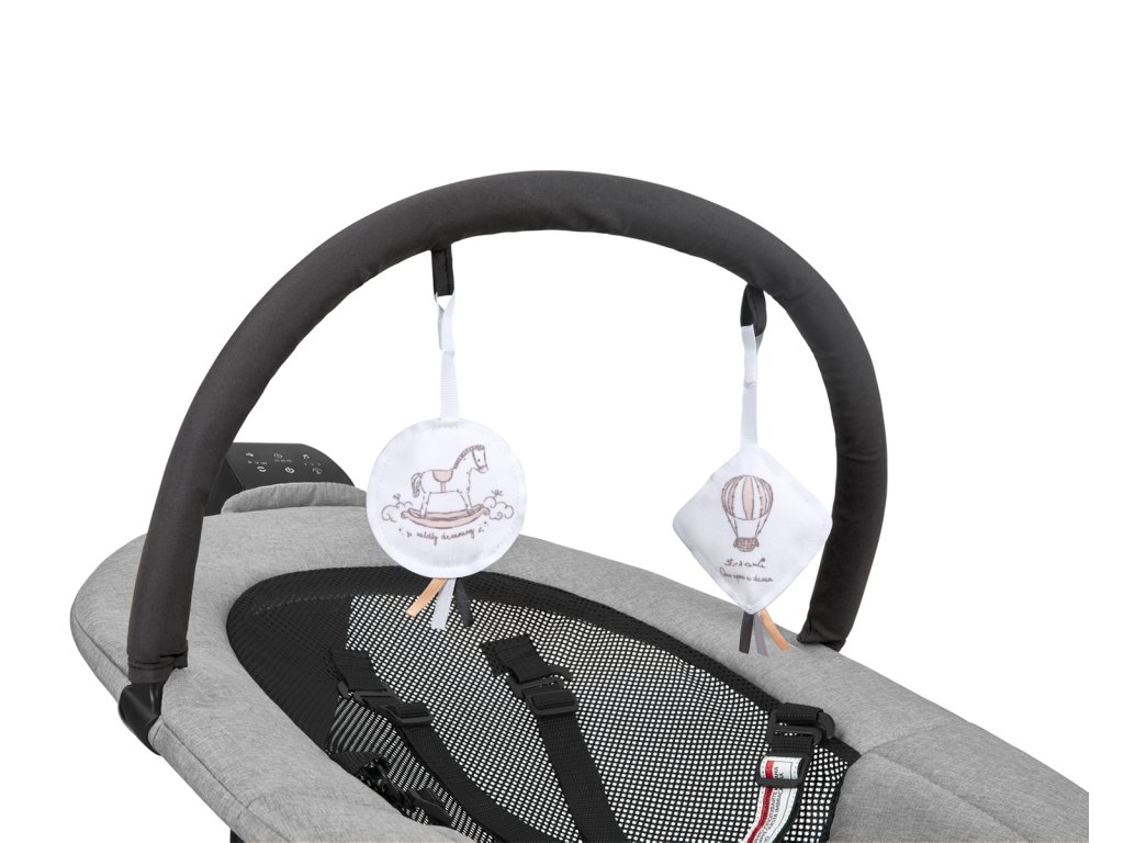 Elektrické houpací lehátko KikkaBoo Zazu je navrženo tak, aby miminku poskytovalo maximální komfort, bezpečí a jemné houpání, které uklidňuje a napomáhá odpočinku. Díky chytrým funkcím, tichému provozu a kvalitní konstrukci se rychle stane oblíbeným místem pro odpočinek i hraní. Nabízí zcela tichý provoz, díky kterému může miminko nerušeně spát. Lehátko nabízí dvě využití: od narození do 9 kg jako houpací lehátko a až do 30 kg jako pevné křesílko. Tichý a plynulý pohyb – zcela nehlučný systém houpání s třemi jedinečnými směry pohybu a třemi nastavitelnými rychlostmi Chytré ovládání – dotykový displej, časovač s volbou 15, 30 nebo 45 minut a 8 melodií s pěti úrovněmi hlasitosti pro klidné usínání Pohodlné a vzdušné – nastavitelná opěrka zad ve dvou polohách a boční části z prodyšné síťoviny zajišťují vzdušnost a pohodlí Zábava pro miminko – hrazdička s měkkými hračkami podporuje zrakové vnímání a motivuje dítě ke hře Bezpečná konstrukce – pevný ocelový rám, 5-bodový bezpečnostní pás a protiskluzové nožičky pro maximální stabilitu Součástí balení je DC adaptér pro pohodlné napájení Konstrukce: ocelový rám Funkce houpání: 3 směry pohybu, 3 rychlosti Audio funkce: 8 melodií, 5 úrovní hlasitosti Časovač: 15 / 30 / 45 minut Rozměry: 79 × 57 × 71 cm Hmotnost: 4,8 kg Vhodné pro děti od narození do 9 kg jako houpací lehátko, do 30 kg jako křesílko.Doplňkové parametry