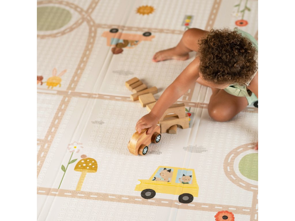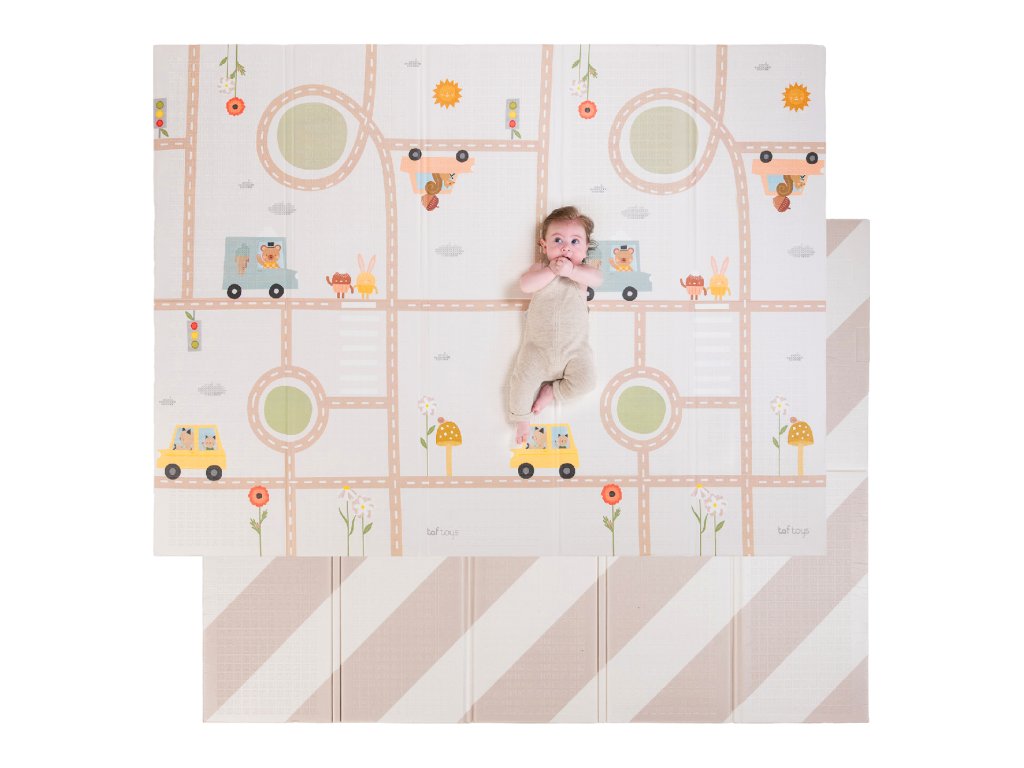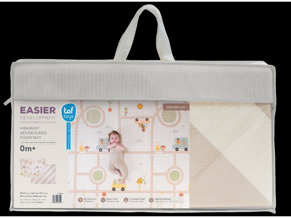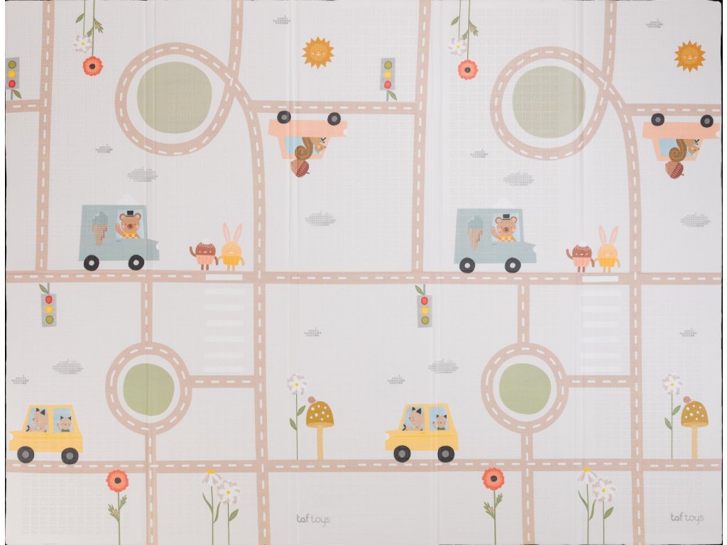 Dopřejte svému miminku měkké, bezpečné místo na hraní, lezení a objevování. Extra velká, oboustranná pěnová hrací deka Taf Toys kombinuje praktičnost, pohodlí a styl – ideální pro moderní rodiny s dětmi od narození. Odolná & stylová - prémiová pěnová vrstva s voděodolným povrchem pro použití doma i venku Měkká a bezpečná - tlumí nárazy, chrání před chladem a tvrdou podlahou - ideální pro první pokusy o lezení a převracení Praktická velikost - rozměr 150 x 200 cm poskytuje dostatek prostoru na hraní, po složení do tašky ji vezmete s sebou kamkoli potřebujete Oboustranné provedení - výrazné barevné ilustrace s doprvními motivy na jedné straně a moderní jednoduchý design na straně druhé Snadná údržba - voděodolná a lehce omyvatelná, stačí otřít vlhkým hadříkem Zdraví na prvním místě - vyrobena z netoxických materiálů bez BPA, ftalátů, olova, rtuti a dalších škodlivin. Co podporuje: Kognitivní rozvoj - natištěné motivy a živé barvy podněcují vnímání vzorů a učení barev Pohyb & lezení - podporuje fyzický vývoj, první plazení i trénink rovnováhy během času na bříšku Emoční rozvoj - nádherné ilustrace rozvíjí fantazii a emocionální vnímání skrze hru Snadná údržba otřením. Vhodné pro děti od narození.Doplňkové parametry