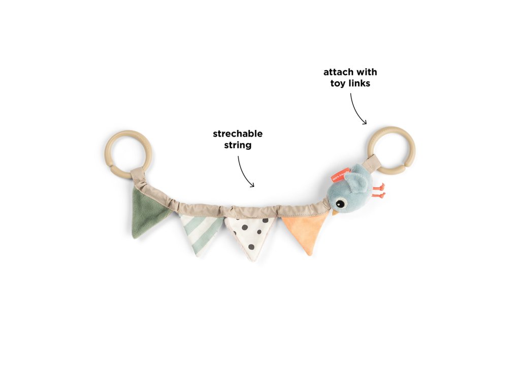 S hračkou Celebration budete vždy připraveni na zábavné dobrodružství. Elastická hračka do kočárku ve stimulujících kontrastních barvách je velmi flexibilní a snadno připevnitelná pomocí oček na kočárek nebo autosedačku.Doplňkové parametry