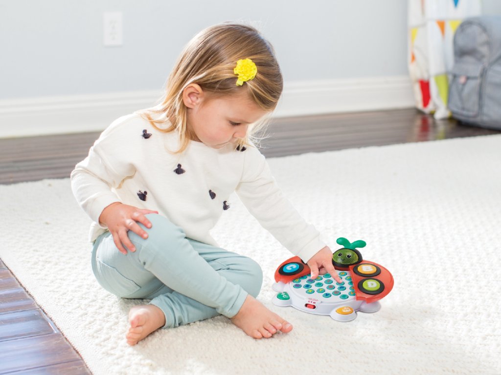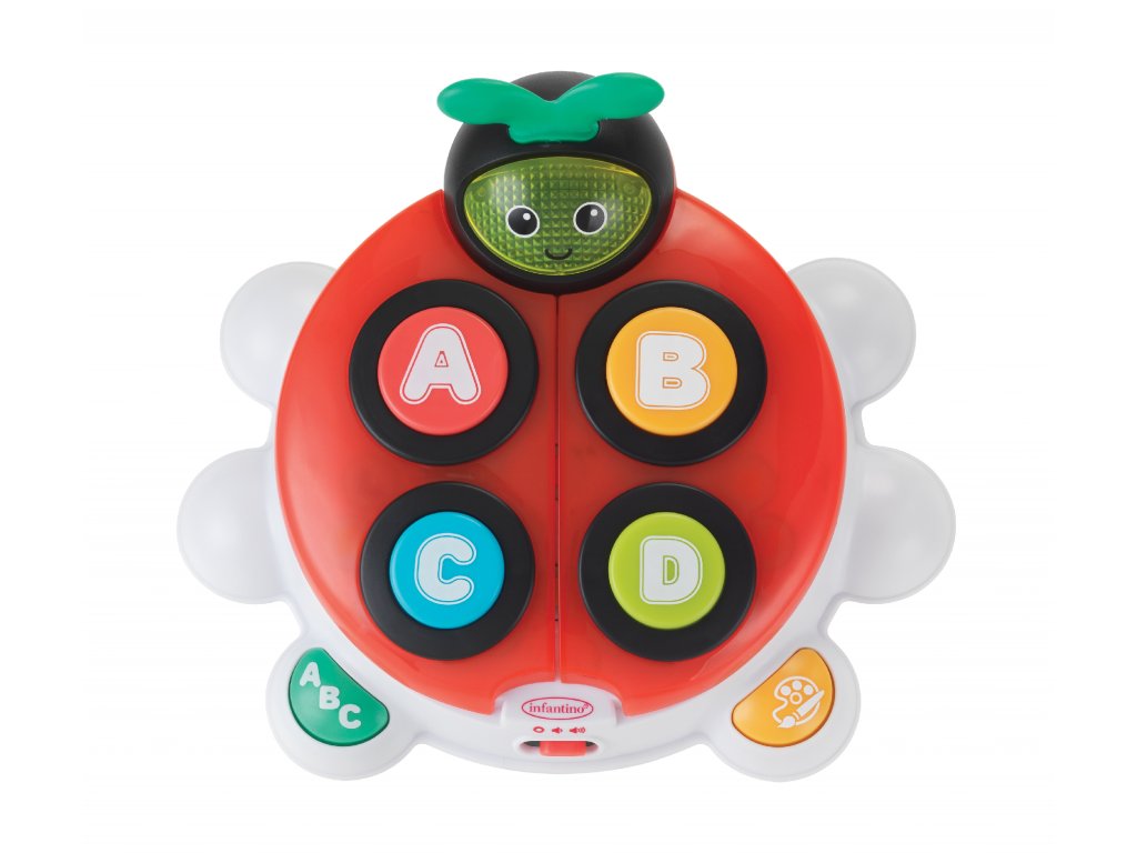 Roztomilá interaktivní beruška, která děti zábavnou formou učí 5 barev a celou abecedu. Stačí otevřít křídla a objeví se všechna písmenka. Hračka dětem představuje názvy písmen, říká slova, která na dané písmeno začínají, a navíc je zapojuje do hry pomocí „hledej a najdi“ kvízů – ptá se, aby děti našly konkrétní písmena nebo barvy. Pro ještě větší zábavu berušce svítí obličej. Beruška nabízí 4 písničky, 93 slov a frází a 14 zvukových efektů, které pomáhají udržet pozornost dítěte. Hračka nabízí dva režimy hraní dle věku dítěte. Pro nejmenší děti jsou vhodná velká tlačítka ABCD, větším dětem stačí otevřít křídla berušky a zpřístupnit tak kompletní abecedu. Všechny mluvené části jsou v angličtině. Vyměnitelné baterie 2xAA 1,5V součástí výrobku. Vhodné pro děti od 6 do 36 měsíců.Doplňkové parametry
