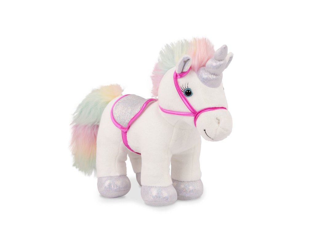 Pohádkový plyšový jednorožec v kabelce s krásným potiskem je vždy připravený na mazlení i na procházku. Miluje vyčesávání své hebké hřívy hřebínkem a díky kabelce si jej vaše dítě může vzít kamkoli. Kabelka má postranní otvory, aby jednorožec při přenášení viděl na svět. Obsah balení: kabelka, plyšový jednorožec, hřeben, lahvička Rozměry: cca 25 x 15 x 23 cm Vhodné pro děti od 3 let.Doplňkové parametry