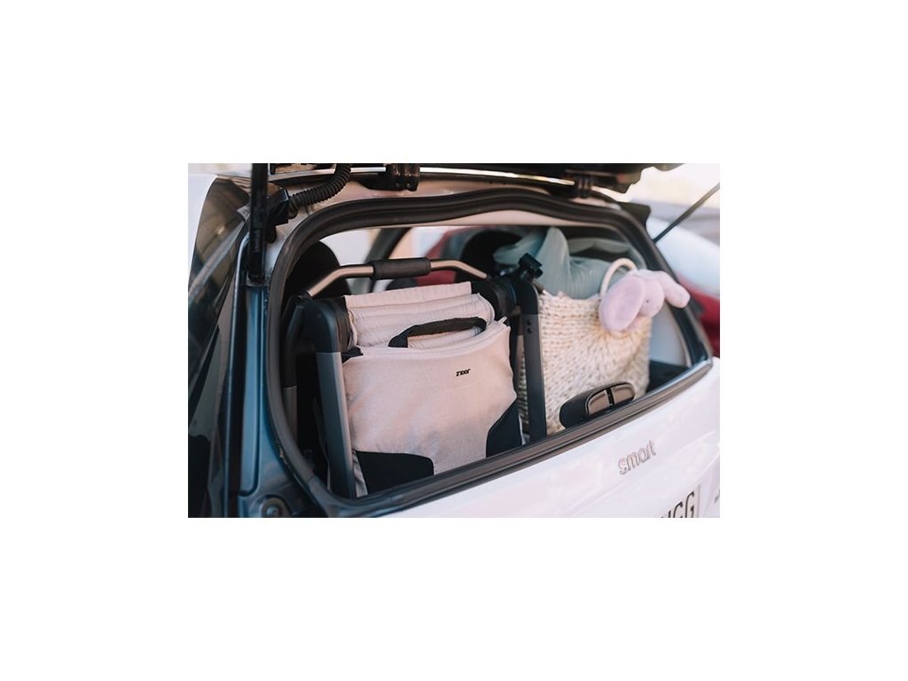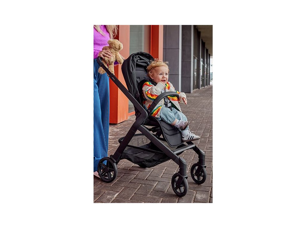 Při skládání si můžete vybrat, zda potřebujete, aby sedátko směřovalo směrem k vám, a nebo ven směrem do světa. Přenositelnost a lehkost kočárku je klíčová, a proto je zde praktický popruh na přenášení. Můžete si ho přehodit přes rameno a vyjít po schodech s oběma rukama volnýma. Víme, že hmotnost s pouhžými 9 kg oceníte s úsměvem na vaší tváři. Jsme jedni z nejlehčích v segmentu kompaktních kočárků!