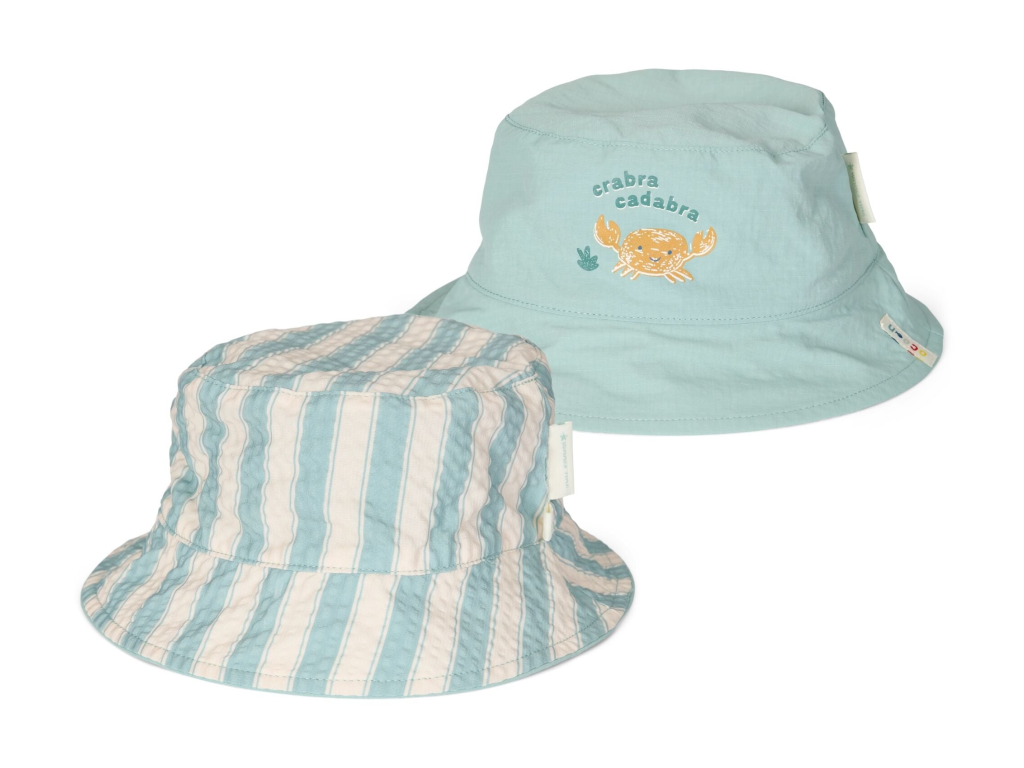 Oboustranný klobouček s krásným potiskem chrání vaše dítě před sluncem při koupání u moře i doma na zahradě. Ať už vaše děti milují skákání ve vlnách, koupání v bazénu nebo si rády staví hrady z písku, s touto čepičkou si mohou bezstarostně užívat celý den. Oboustranné provedení nabízí na výběr dva designy klouboučku - jednobarevný s potiskem a pruhovaný. Velikost 3 je určena pro děti cca od 2 do 4 let. Složení: 94% recyklovaný nylon, 6% spandex Při pobytu na slunci používejte pro dítě ochranné opalovací krémy. Možno prát v pračce na 30°C. Balení obsahuje 1 klobouček.Doplňkové parametry