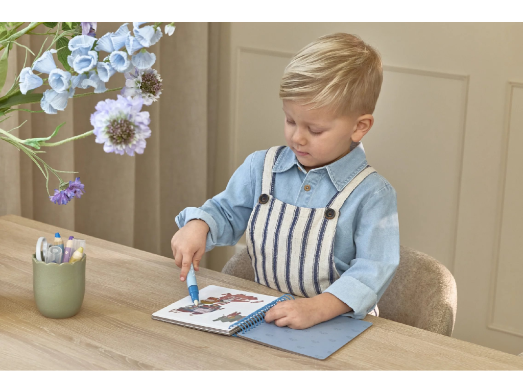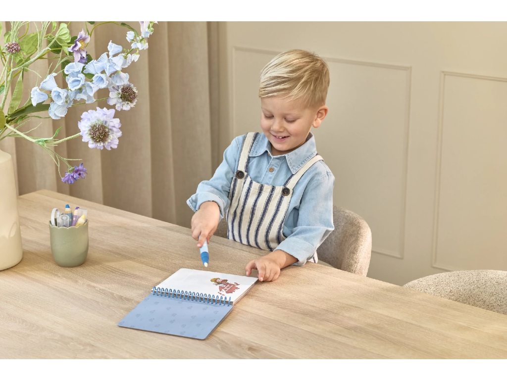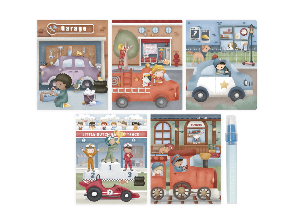Kouzelná knížka skrývá na svých stránkách krásné ilustrace malého Jima, který objevuje svět různých profesí a jejich dopravních prostředků. Ilustrace se odkrývají s pomocí vodního fixu, který je součástí knížky. Stačí fix naplnit vodou a malému umělci či umělkyni se během chvilky postupně vynoří Jim a různé dopravní prostředky. Knížka s pěti ilustrovanými stránkami je opakovaně použitelná. Díky kroužkové vazbě z pevného kartonu drží otevřená pro pohodlné malování. Rozměry: 18 x 16 x 1,5 cm Vhodné pro děti od 3 let.Doplňkové parametry