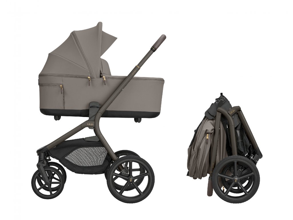 KikkaBoo Goya Platinum je moderní kočárek 2v1 navržený pro rodiče, kteří chtějí maximální flexibilitu od narození až do batolecího věku. Nabízí otočné sportovní sezení po i proti směru jízdy, korbičku s kompaktním skládáním přímo na podvozku a bohatou výbavu v ceně. Lehký hliníkový podvozek vyniká rychlým skládáním, takže se kočárek dobře používá při každodenních procházkách i na cestách. Kočárek s korbičkou Korbička je navržená s důrazem na skladnost a nabízí unikátní možnost skládání kočárku do kompaktního tvaru včetně korbičky nasazené na podvozku. Tlačítka s pamětí umožňují rychlé uvolnění korbičky z podvozku jednou rukou. Pro přizpůsobení kočárku podle výšky rodiče je možno nastavit výšku korbičky do dvou poloh. Pro pohodlí dítěte je součástí oboustranná měkká matrace se zimní stranou z kvalitního sametového materiálu a letní stranou z prodyšné síťoviny pro lepší ventilaci. Stříška má zipové prodloužení, sluneční clonu a doplňuje ji extra sluneční clona pro maximální stín. Ventilaci zajišťují síťované větrací otvory na stříšce i v oblasti hlavy. Praktická je i kapsa na telefon na zip. Voděodolný textilní materiál s UPF 50+ chrání dítě před povětrnostními vlivy a slunečním zářením. Kočárek se sedákem Sportovní sezení je možné nasadit po i proti směru jízdy a díky tlačítkům s pamětí ho uvolníte z podvozku pohodlně jednou rukou. Výšku sezení můžete nastavit do dvou poloh pro přizpůsobení kočárku podle výšky rodiče. Odnímatelné madlo před dítětem je otočné o 360° pro snadnou manipulaci s dítětem a potažené příjemnou ekokůží. Komfort dítěte zajistí polohování opěrky zad do 3 pozic, nastavitelná opěrka nohou, větrací otvory v opěrce zad a 5-bodové pásy s magnetickou přezkou. Stříška má zipové prodloužení, sluneční clonu a ventilační okénko. Voděodolný textilní materiál s UPF 50+ chrání dítě před povětrnostními vlivy a slunečním zářením. Při jízdě oceníte možnost výškového nastavení rukojeti do 5 pozic. Pohodlnou jízdu a snadné manévrování zajišťují velká kola, přední kola jsou otočná o 360° s možností aretace. Nechybí pružinové odpružení zadních i předních kol a spolehlivá "one touch" brzda. Po složení kočárek samostatně stojí. Pro snadné přenášení je připravený popruh přes rameno a madlo. Součástí kočárku je luxusní přebalovací taška s úchyty pro zavěšení na rukojeť kočárku. lehká hliníková konstrukce rychlé skládání s korbičkou i se sedákem po složení samostatně stojí přenášení pomocí ramenního popruhu a madla otočný sedák po i proti směru jízdy uvolnění sedáku i korbičky jednou rukou díky tlačítkům s pamětí výškově nastavitelný sedák i korbička ve 2 pozicích nastavitelná rukojeť s potahem z ekokůže v 5 pozicích 5-bodové pásy s magnetickou přezkou odnímatelné madlo před dítě otočné o 360° voděodolné textilie s UPF 50+ odpružení všech čtyř kol velká kola (11,5" zadní a 8" přední) "one touch" brzda velký košík s magnetickým zavíráním do 10 kg Příslušenství v balení luxusní přebalovací taška s přebalovací podložkou a termo pouzdrem nánožník ke sportovnímu sedáku nánožník ke korbičce adaptéry na korbičku a autosedačku pláštěnka držák na nápoj extra sluneční clona Kočárek je vhodný pro děti od narození až do 22 kg. Upozornění: Nenechávejte dítě v kočárku bez dozoru. Kočárek není vhodný pro běhání nebo jízdu na bruslích. Korbička je vhodná pouze pro děti, které se neumí bez pomoci posadit, převalit nebo zvednout na kolena a ruce.Doplňkové parametry