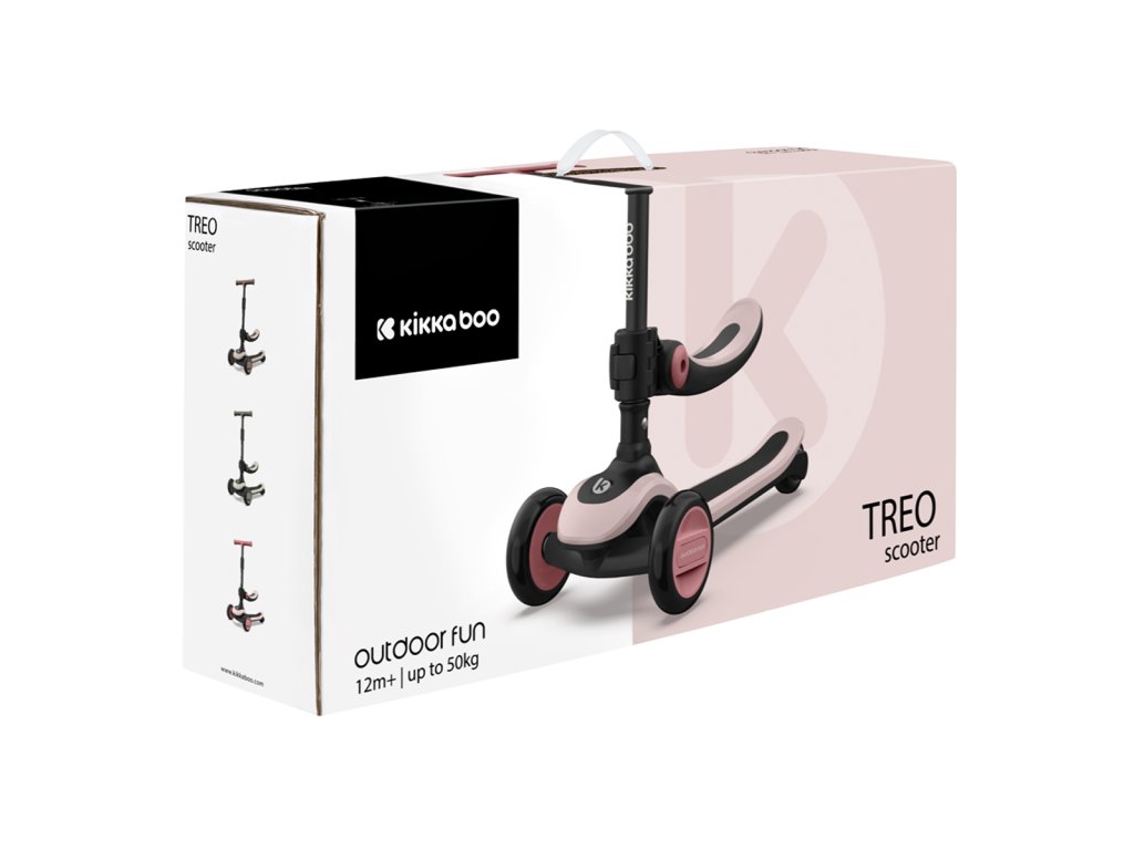 Koloběžka KikkaBoo TREO nabízí inovativní kombinaci odrážedla a dětské koloběžky, která roste spolu s vaším dítětem! Je vhodná již od 1 roku jako odrážedlo a od 2 let jako plnohodnotná koloběžka. Díky svému chytrému designu, bezpečným prvkům a pohodlnému ovládání je ideálním společníkem vašeho dítěte pro každodenní dobrodružství. 2v1: Odrážedlo + koloběžka Od 12 měsíců jako odrážedlo (max. 20 kg) Od 24 měsíců jako koloběžka (max. 50 kg) Přizpůsobitelná a pohodlná Nastavitelná výška odnímatelného sedátka Výškově nastavitelné pogumované řídítka pro pohodlný úchop Blokace otáčení řídítek pro bezpečné používání v režimu odrážedla Hladká a tichá jízda se světelným efektem Tichá polyuretanová kolečka s LED světly Skrytá zadní brzda pro snadné a účinné zastavení Protiskluzová nášlapná plocha Skladná a lehká Nízká hmotnost (pouze 3,6 kg) Skládací konstrukce – ideální na cesty i do malých prostor Rozměry: 63 × 31 × 56–76 cm Hmotnost: 3,6 kg Maximální nosnost: 20 kg (odrážedlo), 50 kg (koloběžka) Testováno dle evropských bezpečnostních standardů EN 71-1, EN 71-2, EN 71-3 Vhodné pro děti od 12 měsíců jako odrážedlo, od 24 měsíců jako koloběžka.Doplňkové parametry