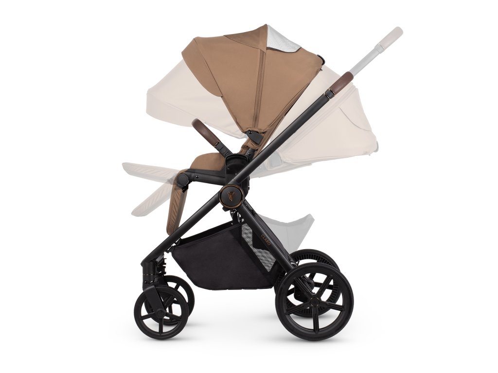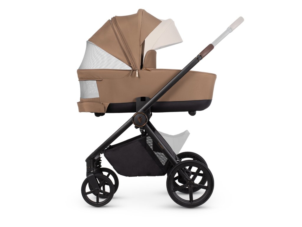 Claro je ztělesněním elegance a funkčnosti. Jemné detaily, ozdobné prvky a stylový vzor uvnitř korbičky dělají z tohoto kočárku módní doplněk, který bude zářit na každé procházce. Barva Caramel přidává nádech luxusu a nadčasovosti.