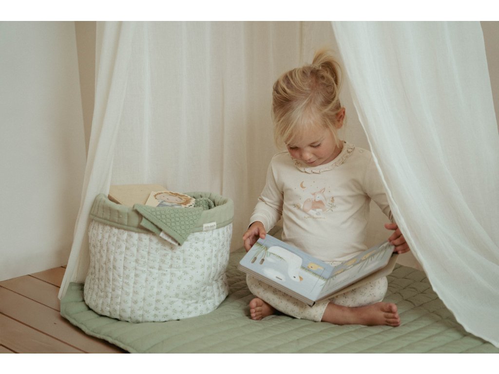 Košík s krásným jemným potiskem je vyroben z pevného bavlněného materiálu. Využijete jej pro přehledné uložení všeho, co potřebujete mít po ruce při každodenní péči o vaše miminko nebo na rychlé uklizení drobných hraček. Košík bude zároveň krásným doplňkem v dětském pokoji. Oboustranné provedení umožňuje volbu vzhledu košíku dle vašich preferencí. Košík jje součástí designové kolekce textilu a doplňků Little Dutch Blueberry Leaves. Složení: 100% organická bavlna Rozměry: 30 x 30 x 25 cmDoplňkové parametry