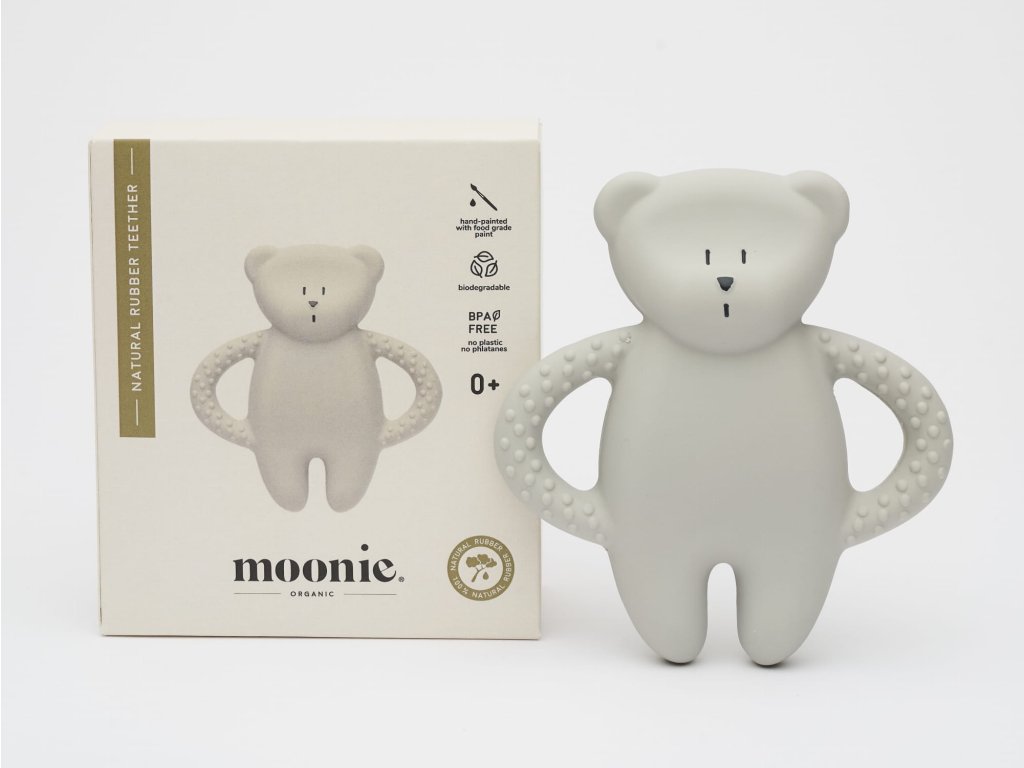 Kousátko MOONIE podobě roztomilého medvídka z přírodního kaučuku bylo pečlivě navrženo tak, aby zklidnilo bolavé dásně během prořezávání zoubků a zároveň poskytovalo bezpečný a příjemný smyslový zážitek. Tvar a velikost kousátka umožňují snadné držení malými dětskými ručičkami, různorodé textury lákají dítě ke zkoumání. Hračka je ručně malovaná netoxickými potravinářskými barvami. Kousátko z přírodního kaučuku je přirozeně odolné vůči bakteriím a plísním a snadno se čistí, stačí jej omýt teplou vodou a jemným mýdlem. Kousátko je plně biologicky odbouratelné. S ohledem na udržitelnost životního prostředí je výrobní proces hračky certifikovaný podle standardů FSC a GOLS. Neobsahuje BPA, ftaláty ani nitrosaminy. Rozměry: 12 x 12 cm Vhodné pro děti od narození.Doplňkové parametry