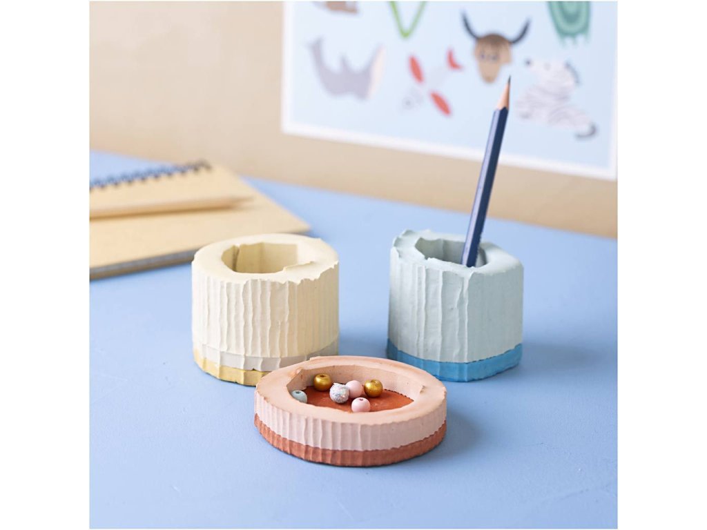 Zábavný a jednoduchý projekt pro školáky! Tato kreativní sada umožňuje dětem od 7 let vytvořit si vlastní barevné stojánky na psací potřeby z odlévaného cementu. Stačí jen pár ingrediencí, trocha fantazie – a během pár hodin je hotovo. Vlastnoručně vyrobený doplněk na pracovní stůl: • S pomocí barevných pigmentů si děti vytvoří 3 originální stojánky ve žluté, červené a modré barvě • Stojánky se skvěle hodí na tužky, pastelky nebo drobnosti na stole • Formy se jednoduše vystřihnou z vnitřní strany krabičky, ve které sada přijde Jednoduchý proces – skvělý výsledek: • Stačí smíchat cement s vodou a pigmentem, promíchat a nalít do formy • Vhodné i pro začátečníky – ideální jako projekt na odpoledne, víkend nebo tvořivou hodinu • Podporuje trpělivost, přesnost a tvůrčí myšlení Obsah balení: Bílý cement Barevné pigmenty (modrá, červená, žlutá) Lepicí hmota Rukavice Míchací špachtle Návod Formy si děti vytvoří z vnitřní části obalu Vhodné pro děti od 7 let.Doplňkové parametry