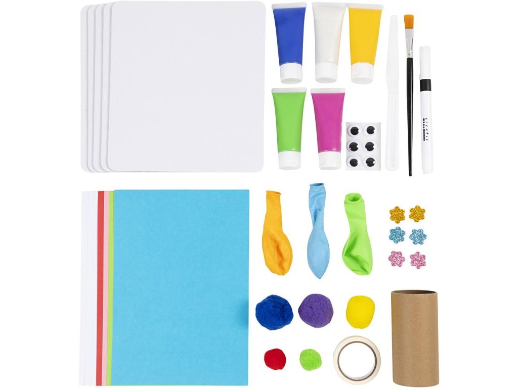 Objevte s dětmi radost z malování hravou formou! Tato kreativní sada je určena dětem od 4 let a nabízí pět různých výtvarných technik, které rozvíjí fantazii, smysly i jemnou motoriku – a to zábavně a beze stresu. Hravé malování bez štětců: • Děti si vyzkouší malování balónkem, vatovou kuličkou, kartonovou trubičkou, škrabkou i maskovací páskou • Každý obrázek si mohou originálně dozdobit pomocí pohyblivých očí, květinek z EVA pěny nebo pomponků • Po dokončení se obrázky díky skrytým nožičkám postaví, takže se ihned stanou krásnou výstavkou na poličce či stolku Tvoření, které rozvíjí: • Podporuje smyslové vnímání, zručnost i představivost • Pomáhá dětem soustředit se, relaxovat a vyjádřit své nápady skrze barvy a struktury • Vhodné i pro děti bez předchozích výtvarných zkušeností Obsah balení: 5 dekoračních kartonových destiček s výklopnými nožkami Barvy a štětec Škrabka, balón, pom-pomy, kartonová trubička Maskovací páska Očička, květinky z EVA pěny, fix Návod s popisem technik Vhodné pro děti od 4 let.Doplňkové parametry