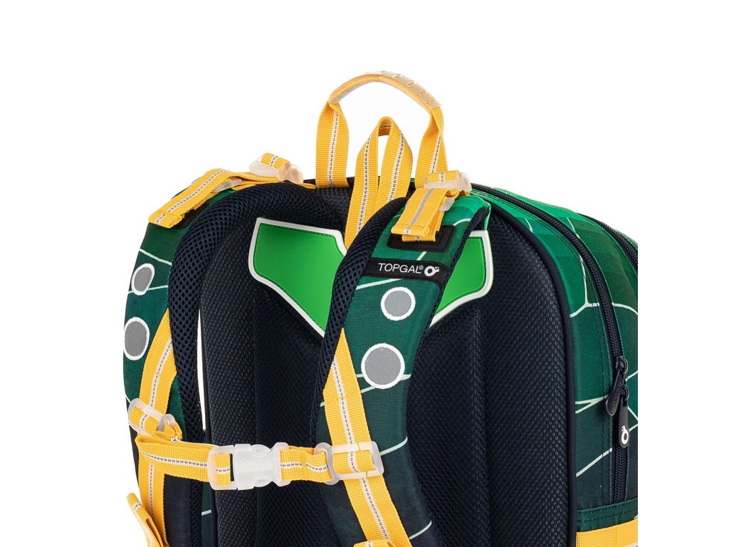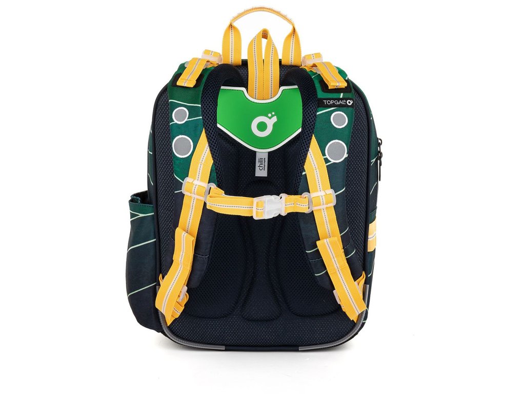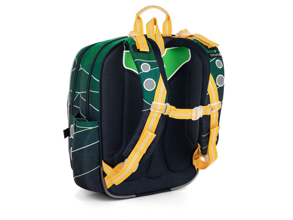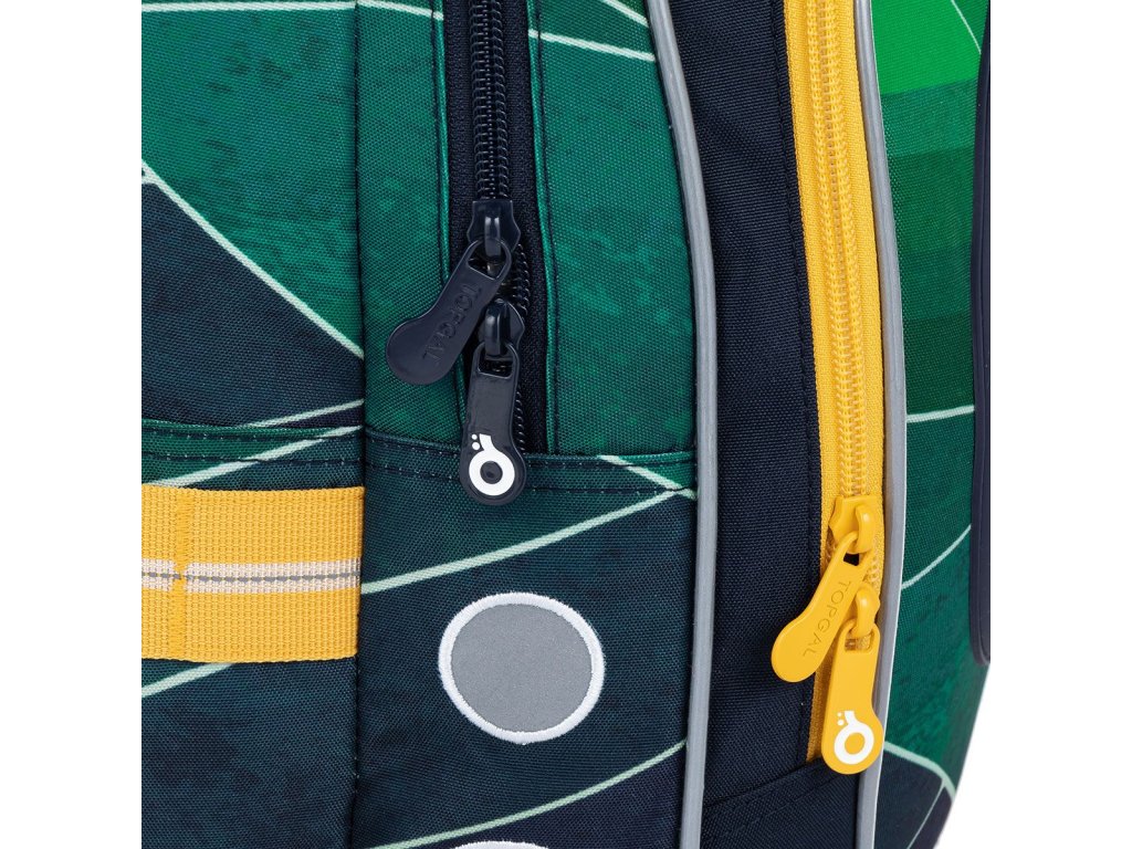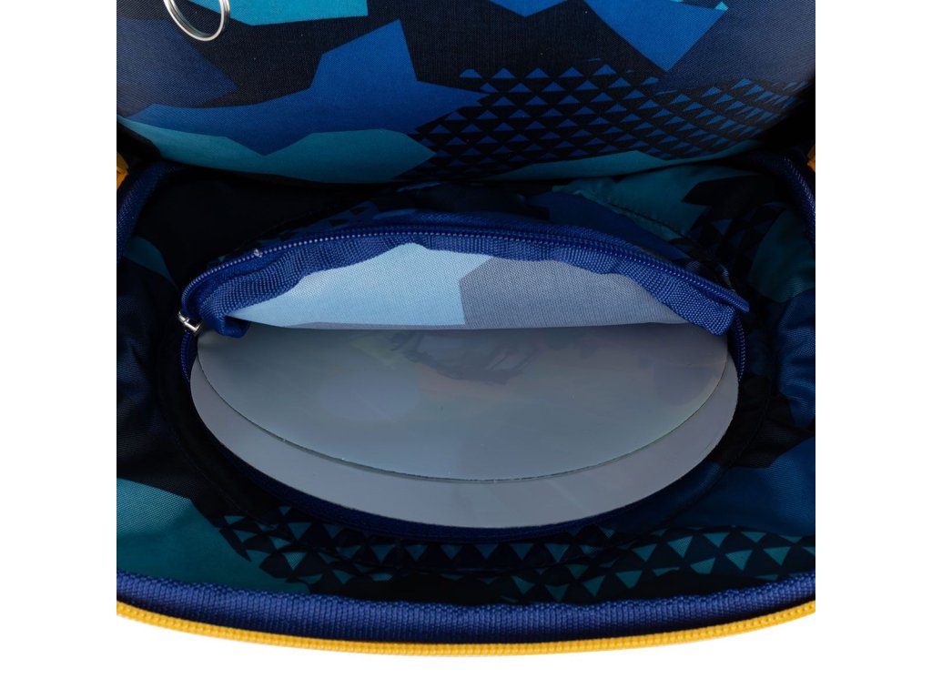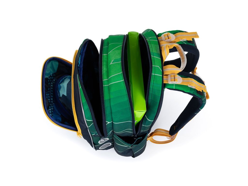Batoh má dvě objemné hlavní komory. Zadní komora je širší - doporučujeme k zádům dávat nejtěžší učebnice nebo desky na sešity. Přední komora je o něco užší a je v ní umístěna ještě malá síťová kapsa na zip a jmenovka.