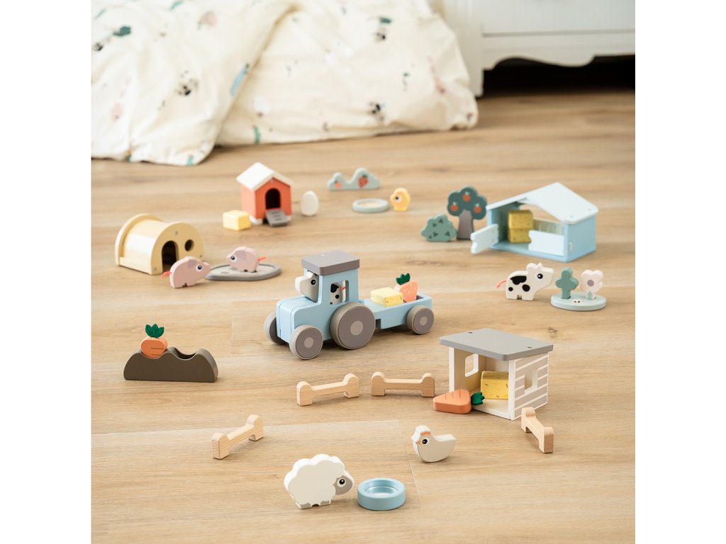 Malá herní sada Tiny Farm podporuje rané vyprávění a rozvoj řeči. Trénuje jemnou motoriku a koordinaci ruka-oko. Sada je navržena pro malé ručičky s velkou fantazií. Lze kombinovat a rozšiřovat s dalšími sadami Tiny farm. Vyrobeno ze dřeva ze zodpovědných zdrojů a bezpečné barvy na vodní bázi.Doplňkové parametry